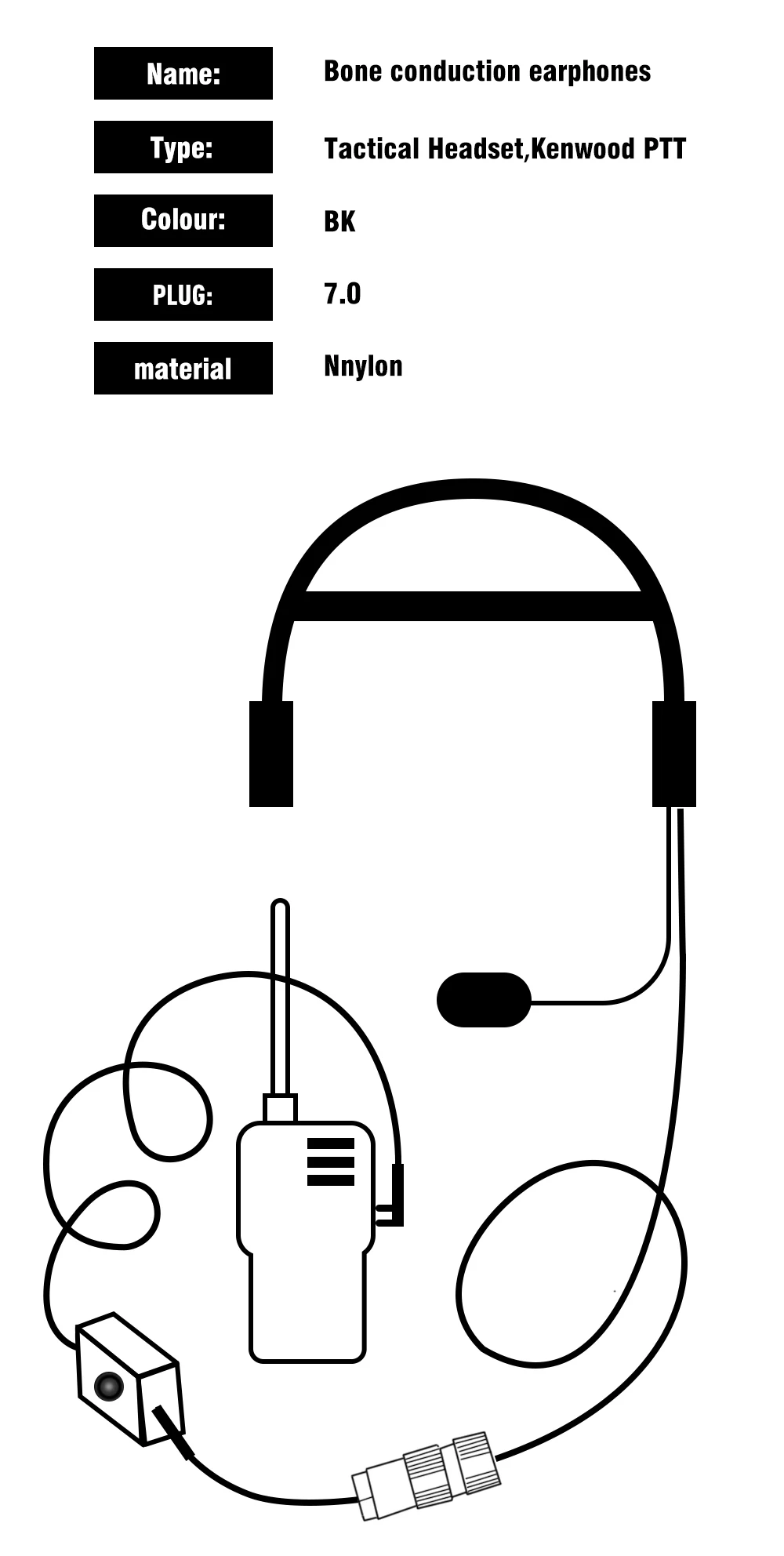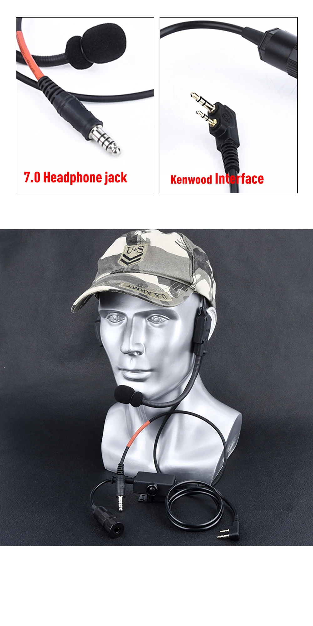Auriculares tácticos Wadsn MH180-V, auriculares con señal de conducción ósea, Airsoft para exteriores, accesorios para auriculares de caza 7,0 enchufes Kenwood PPT