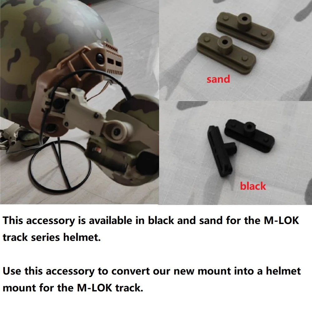 El adaptador de riel se puede utilizar para toda la gama de cascos FAST, cascos ACH, cascos MICH y otros cascos con rieles ARC en los laterales.