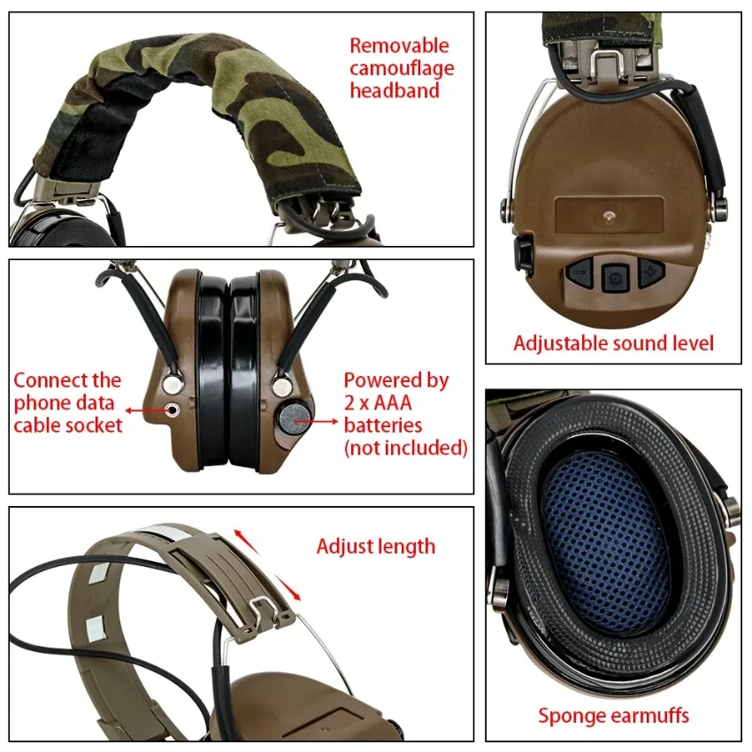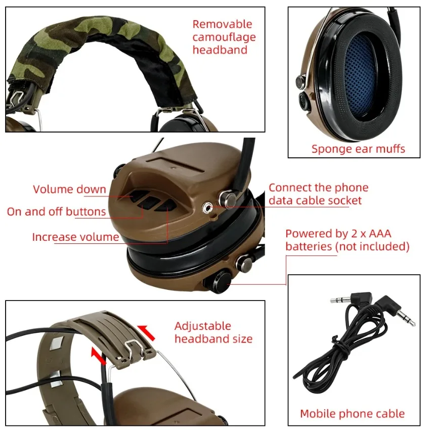 El diseño ultrafino de copa y Diadema permite que los auriculares se usen debajo de un casco a prueba de balas. Diseño electrónico digital controlado por un microprocesador. Esto hace posible combinar un consumo de corriente extremadamente bajo con un alto rendimiento. Reproducción estéreo clara y natural.