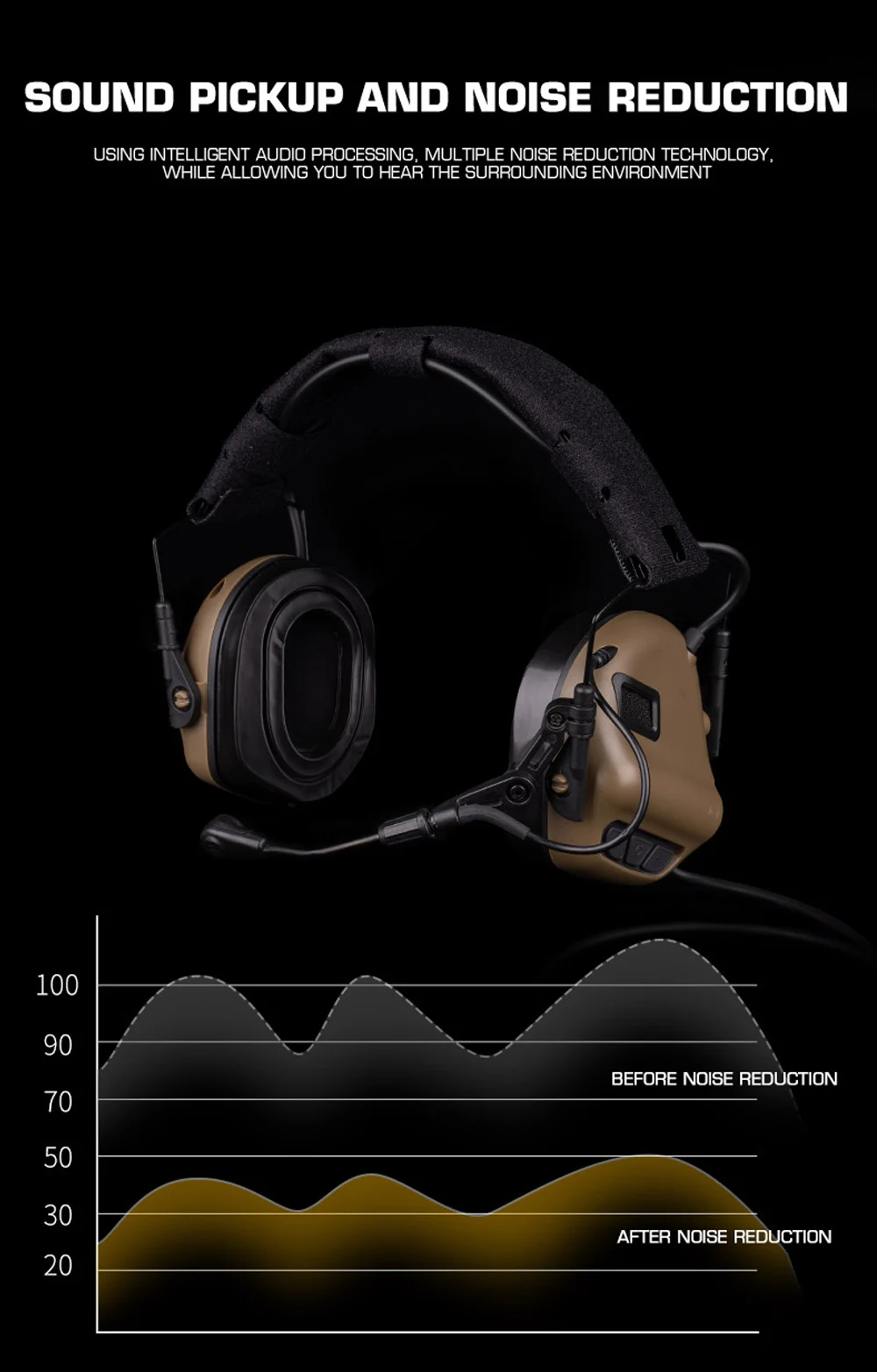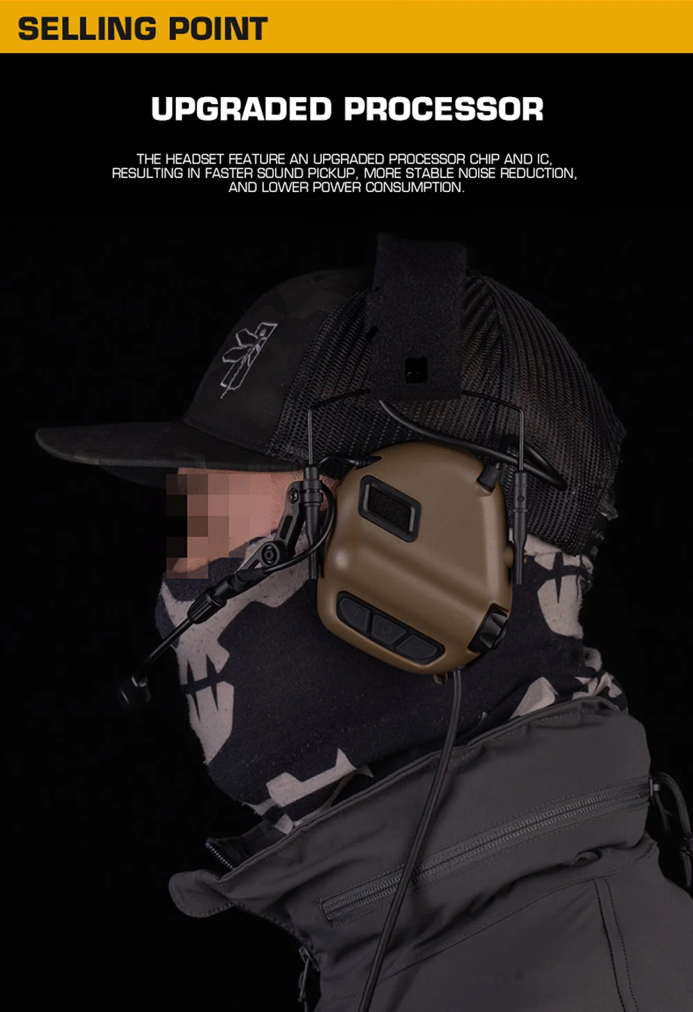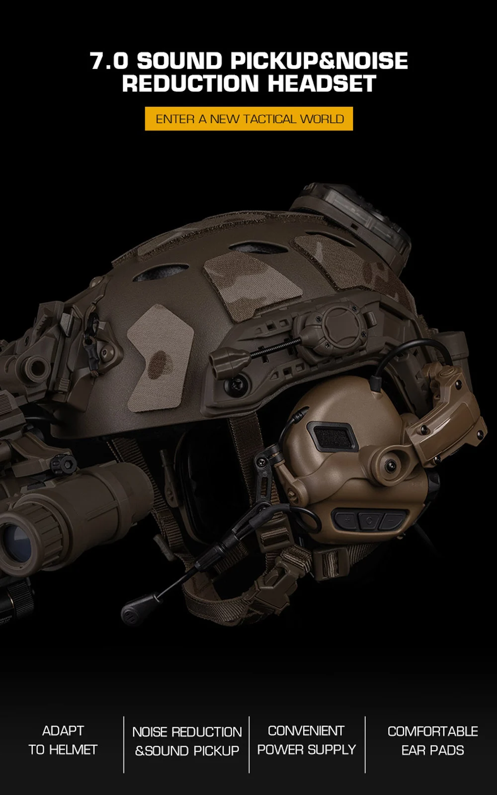 Auriculares con reducción de ruido y captación de sonido 7,0, procesador mejorado, caza al aire libre, combate, tiro, Airsoft, auriculares aptos para casco táctico