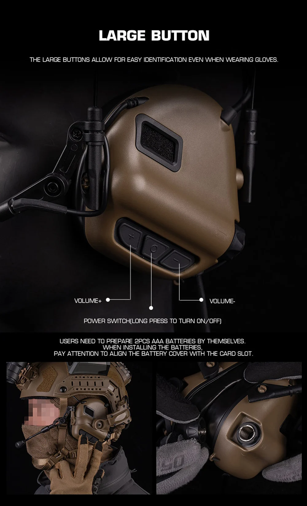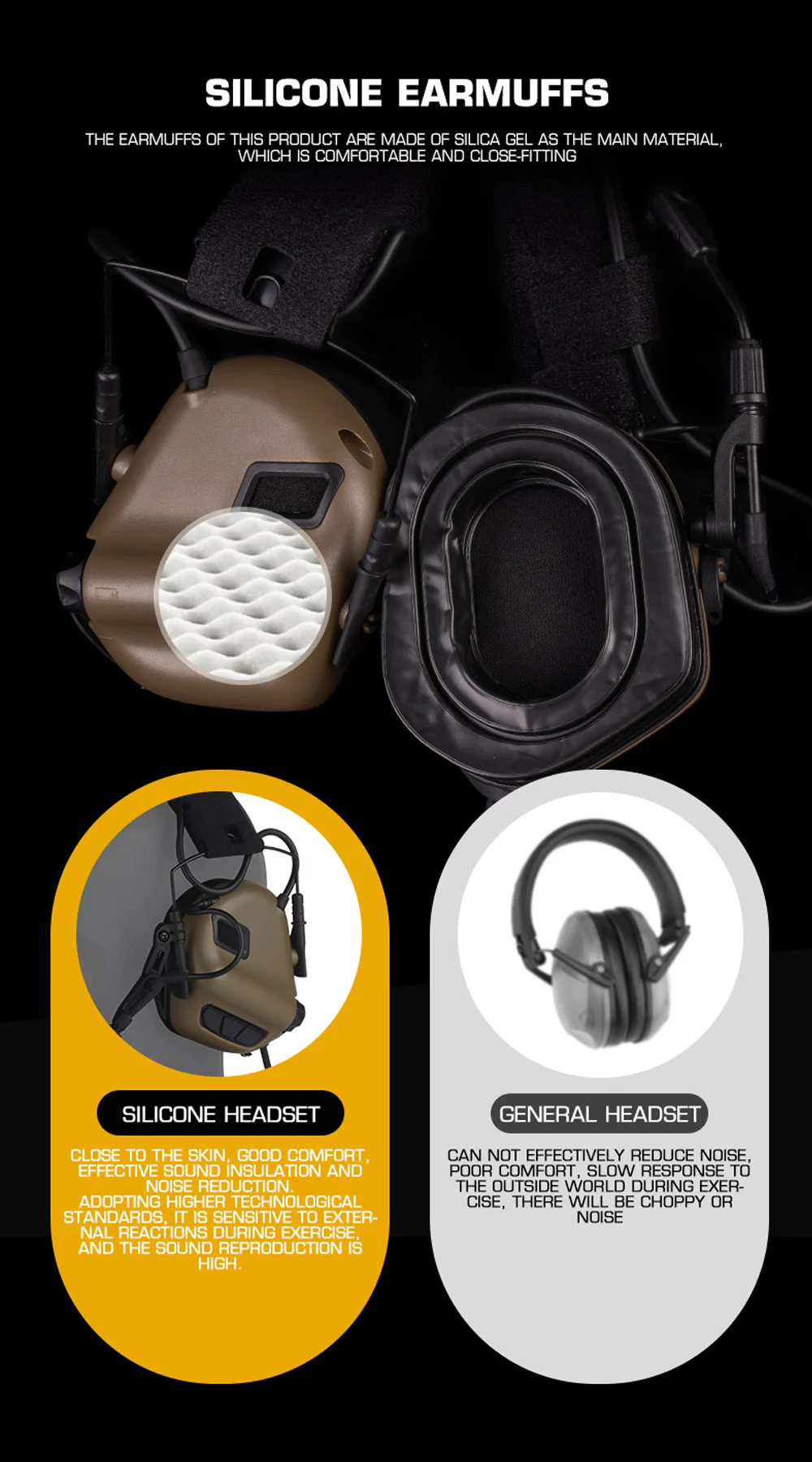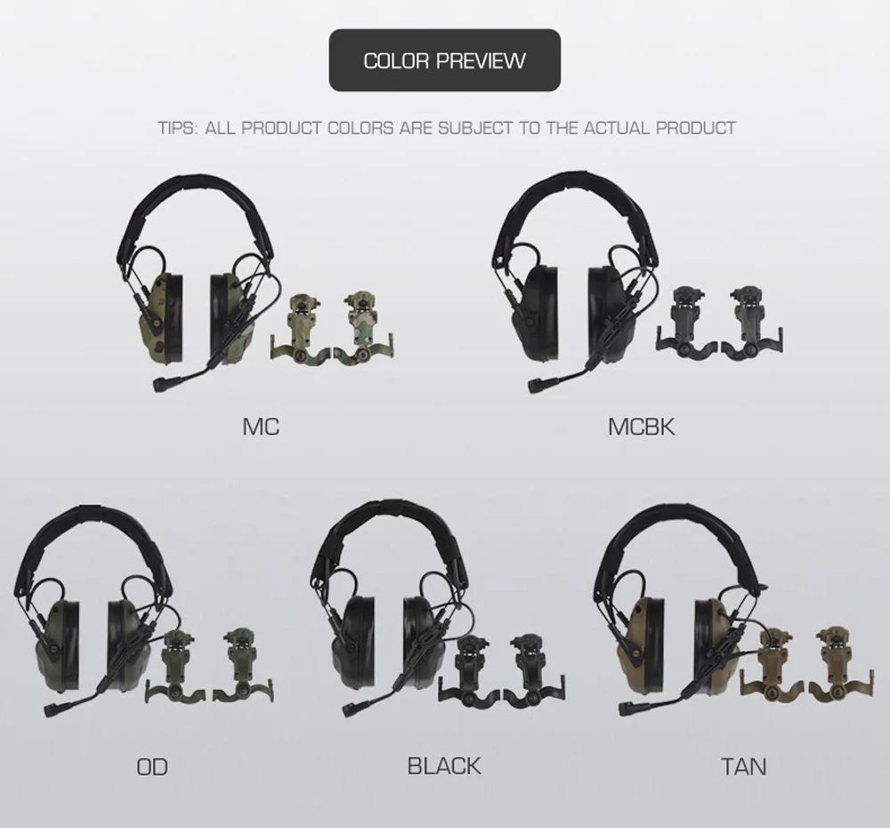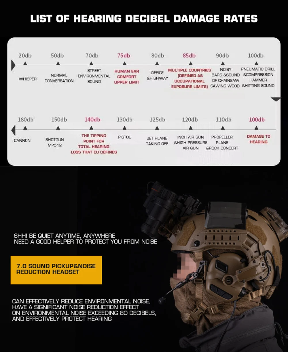 Auriculares con reducción de ruido y captación de sonido 7,0, procesador mejorado, caza al aire libre, combate, tiro, Airsoft, auriculares aptos para casco táctico