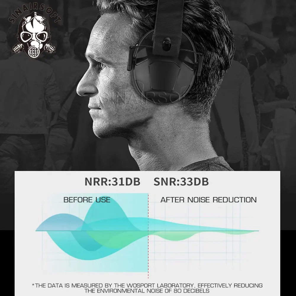 SINAIRSOFT Auriculares de seguridad con reducción de ruido, NRR DB31 IPSC Shooter Protección auditiva Orejeras para campo de tiro Auriculares con cancelación de ruido