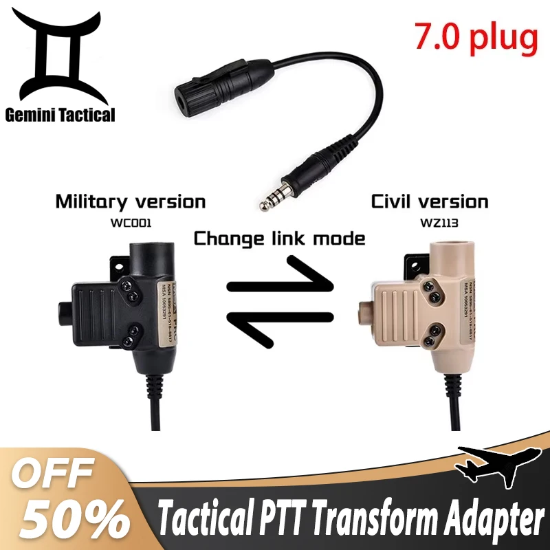 Adaptador de transformación de cableado de auriculares tácticos serie completa auriculares U94 PTT adaptadores Softair Militry auriculares convertidor Accesorios