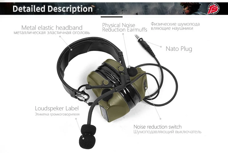 TÁCTICO - SKY C2 Comtac II Versión de gama alta Táctica Ruido - Auriculares con cancelación - Puntas de silicona - Verde militar (FG)