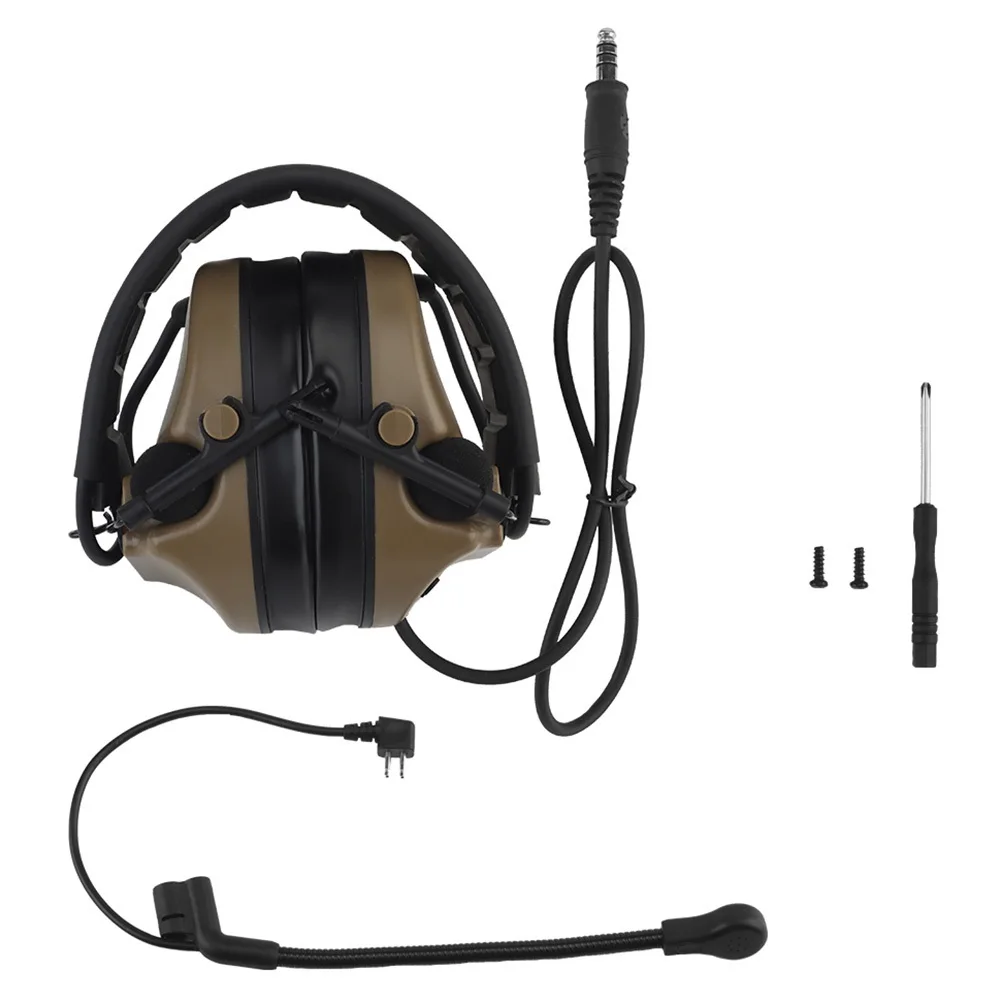 Auriculares tácticos profesionales con cancelación de ruido y radio. Ofrece una excelente claridad de sonido y reducción de ruido dinámica. Adecuado para pistolas de aire, caza, operaciones de ambiente ruidoso y otros escenarios.
