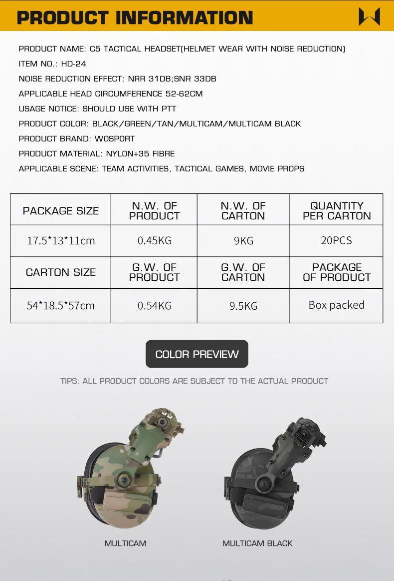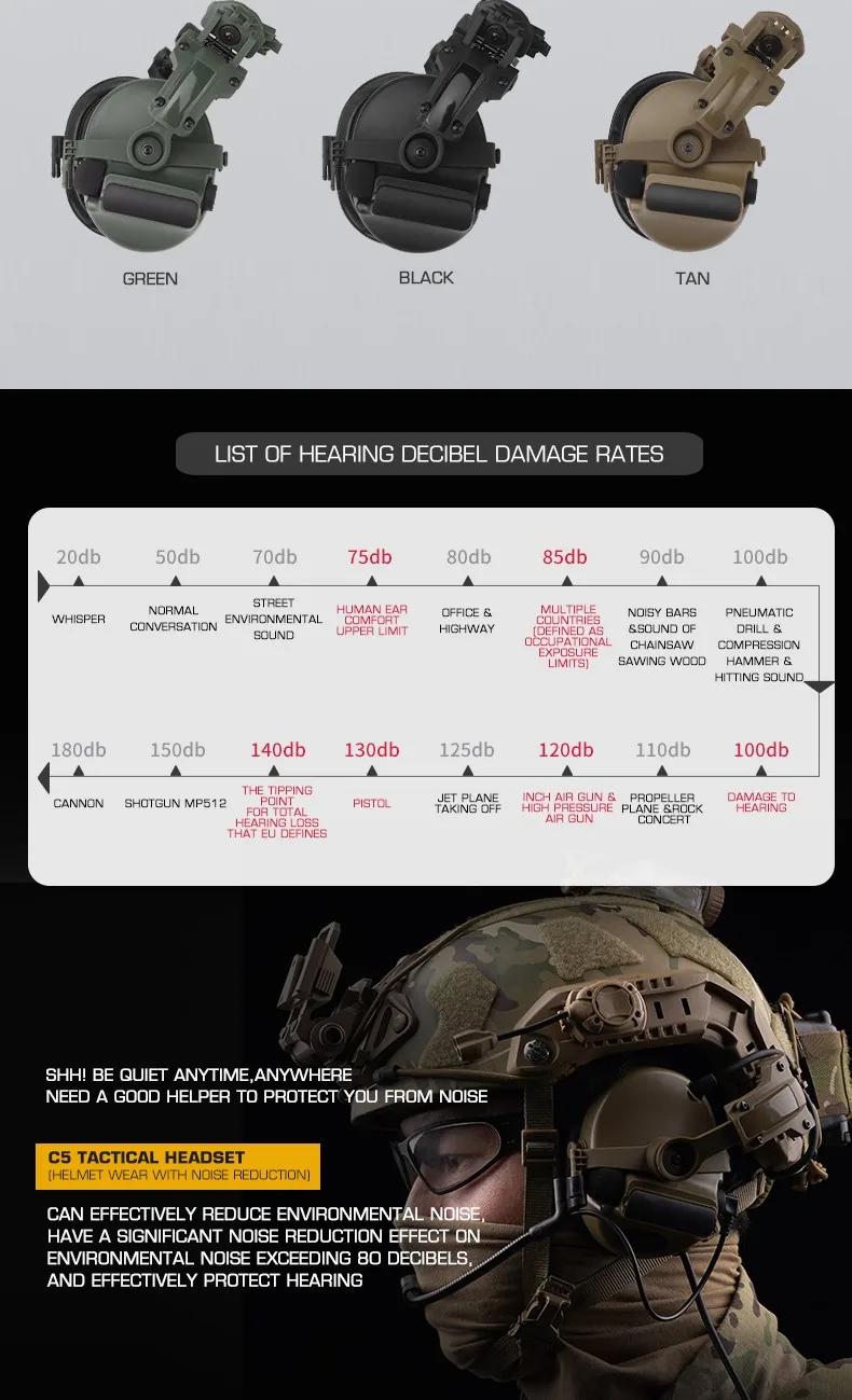 Auriculares tácticos C5 (desgaste del casco)con reducción de ruido)
