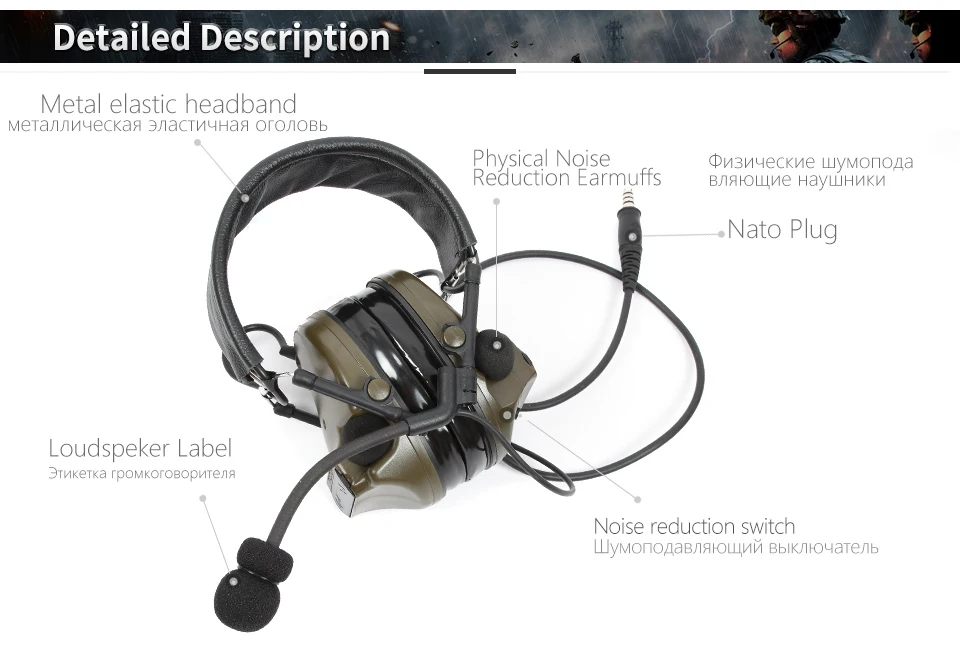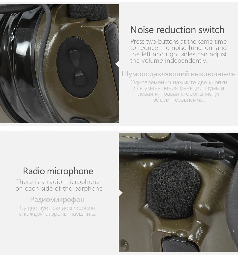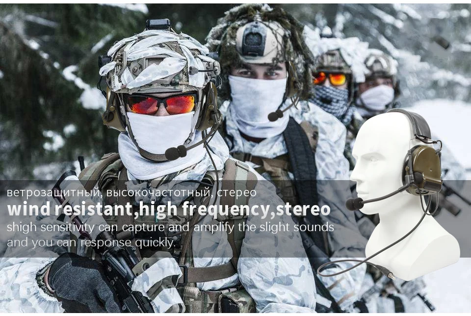 Auriculares tácticos con cancelación de ruido C3 con audiencia amplificada: auriculares Comms de silicona mejorados en verde táctico para comunicación