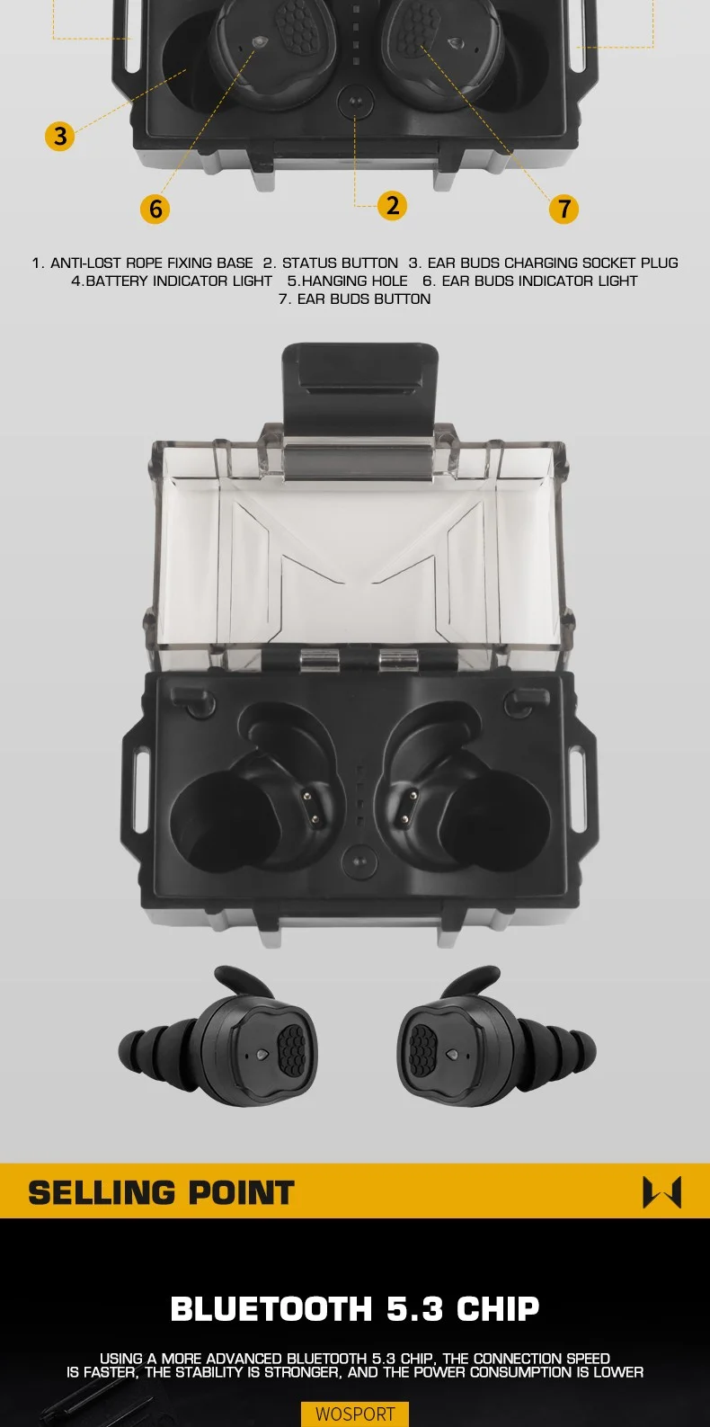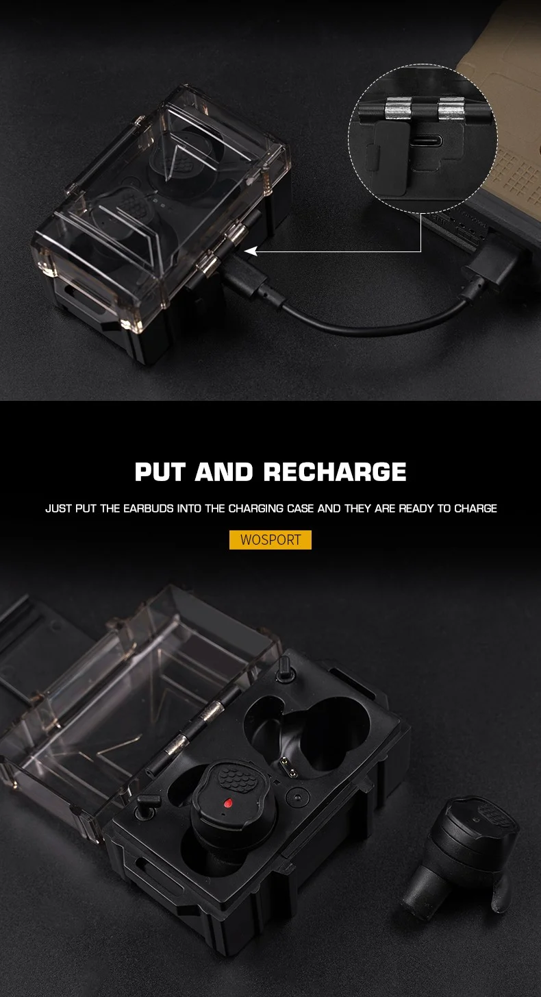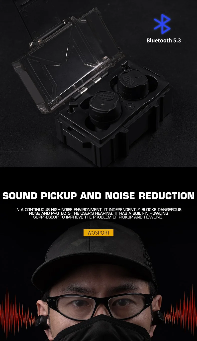 Auriculares tácticos con cancelación de ruido para caza, deportes, captación de sonido insonorizada, NRR 26DB, conexión Bluetooth, tapones para los oídos intrauditivos