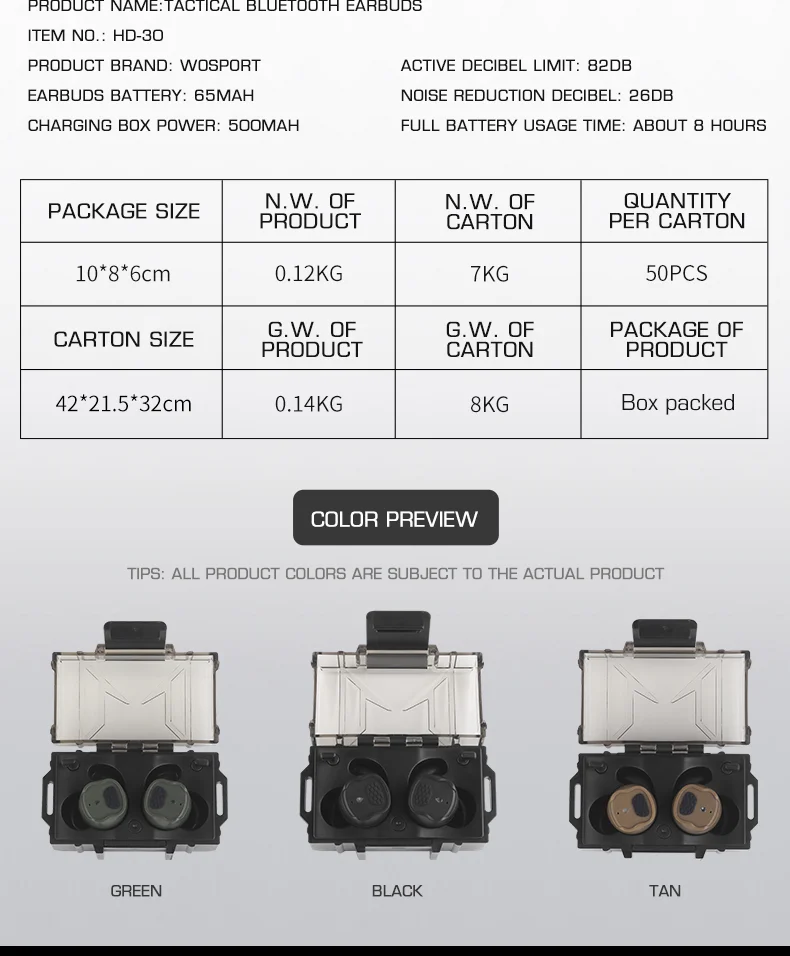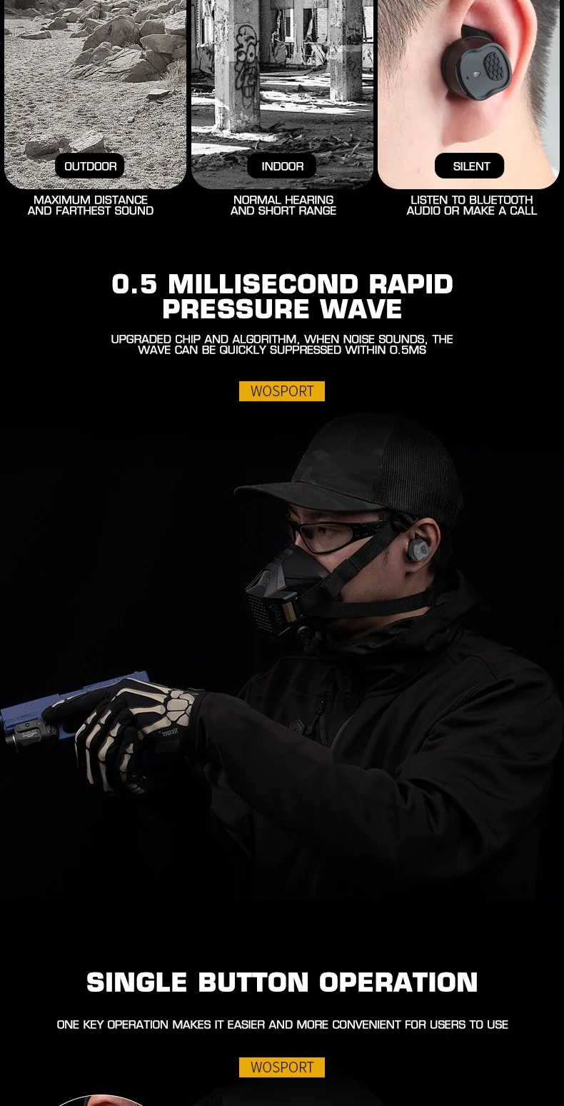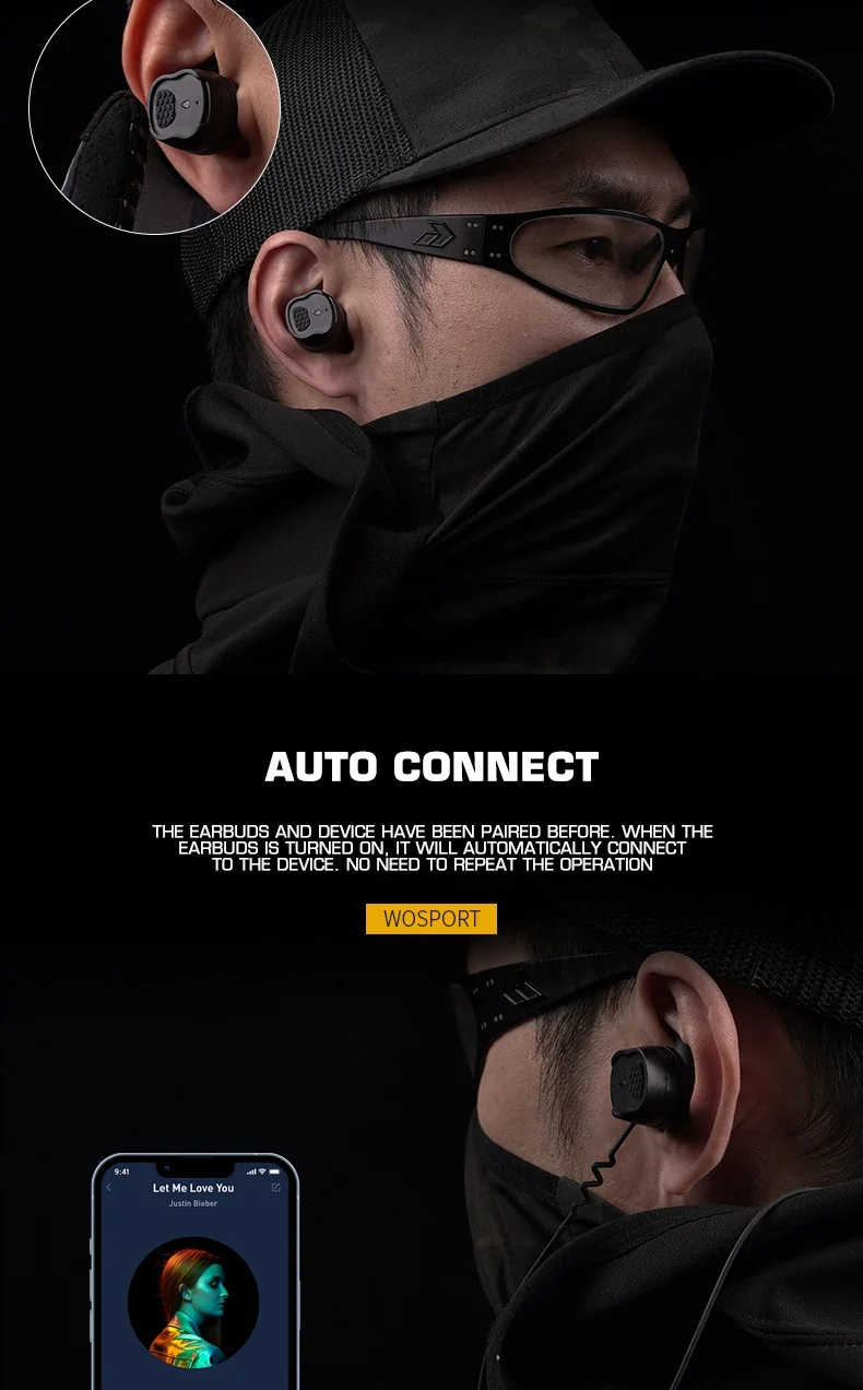 Auriculares tácticos con cancelación de ruido para caza, deportes, captación de sonido insonorizada, NRR 26DB, conexión Bluetooth, tapones para los oídos intrauditivos