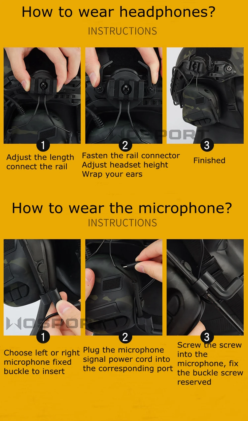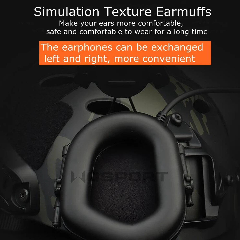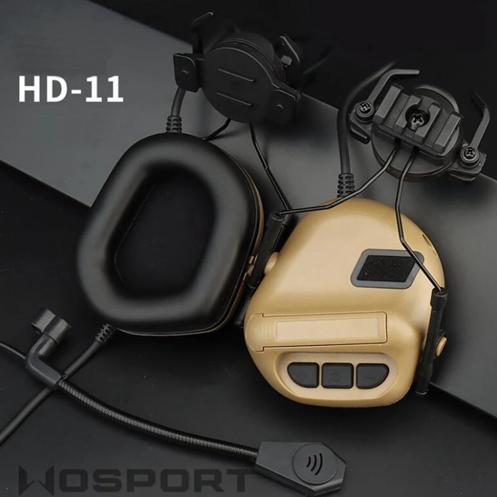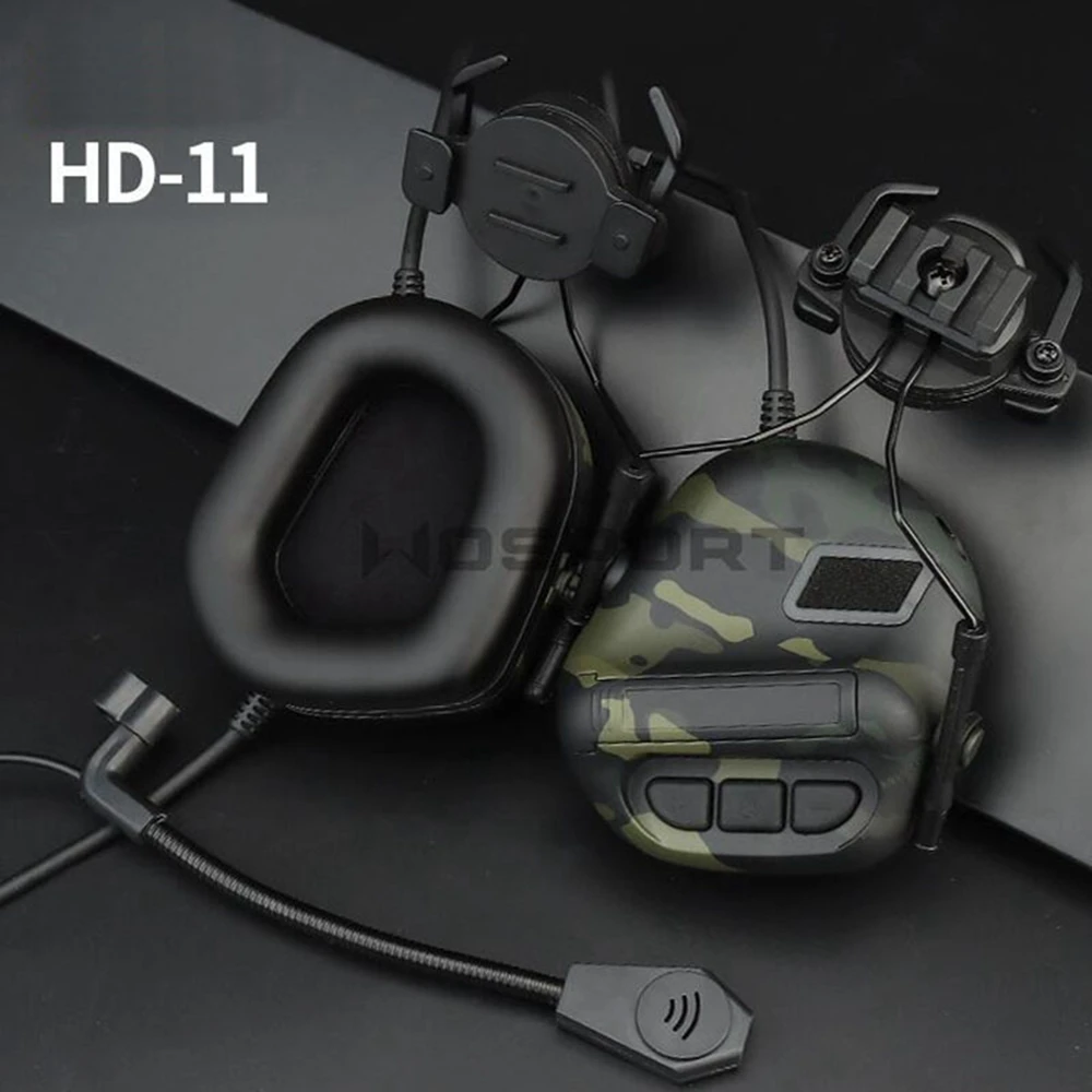 Auriculares tácticos para casco, captación de sonido, auriculares para tiro, caza, reducción de ruido, orejeras con riel de casco adaptado