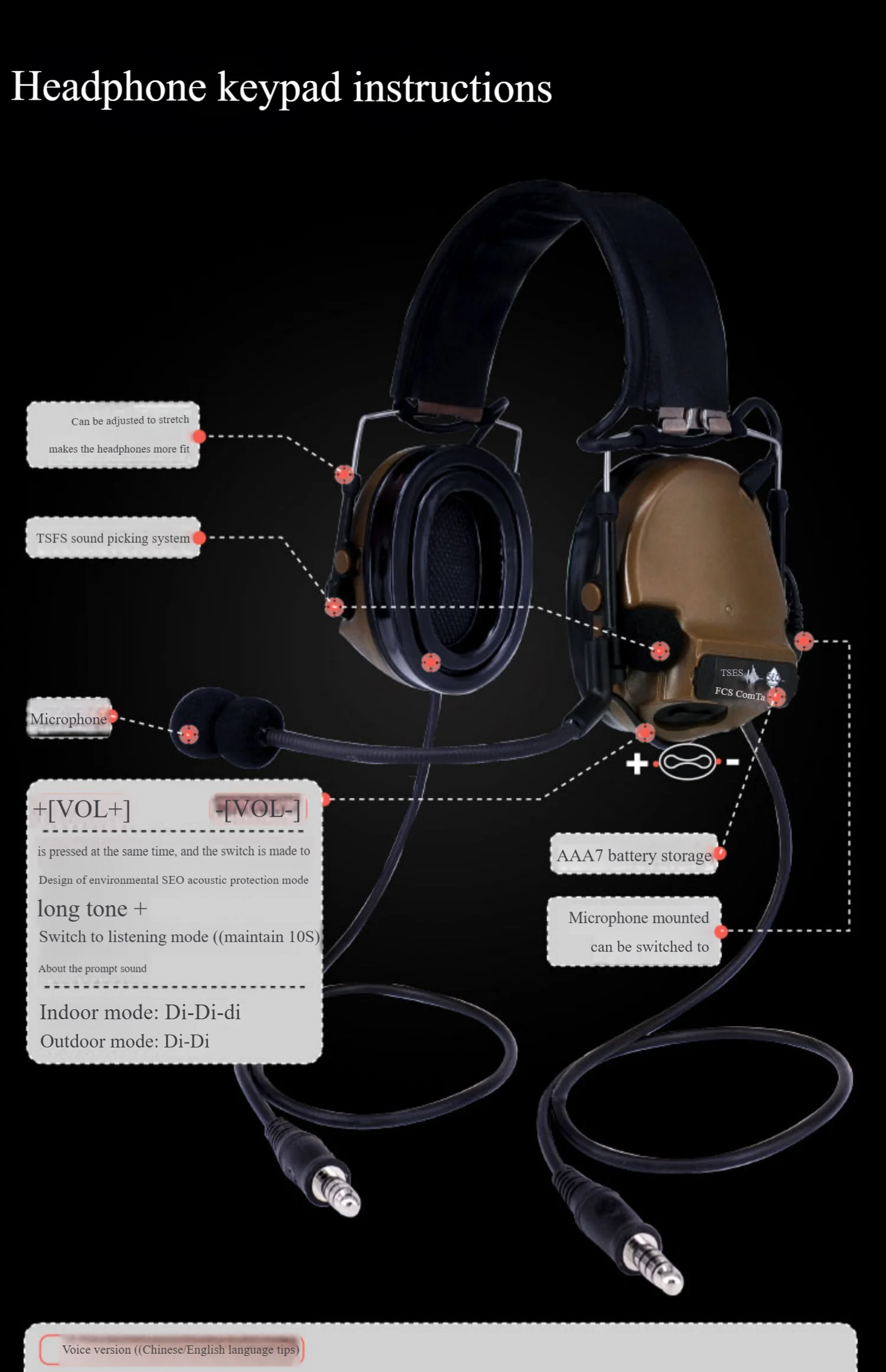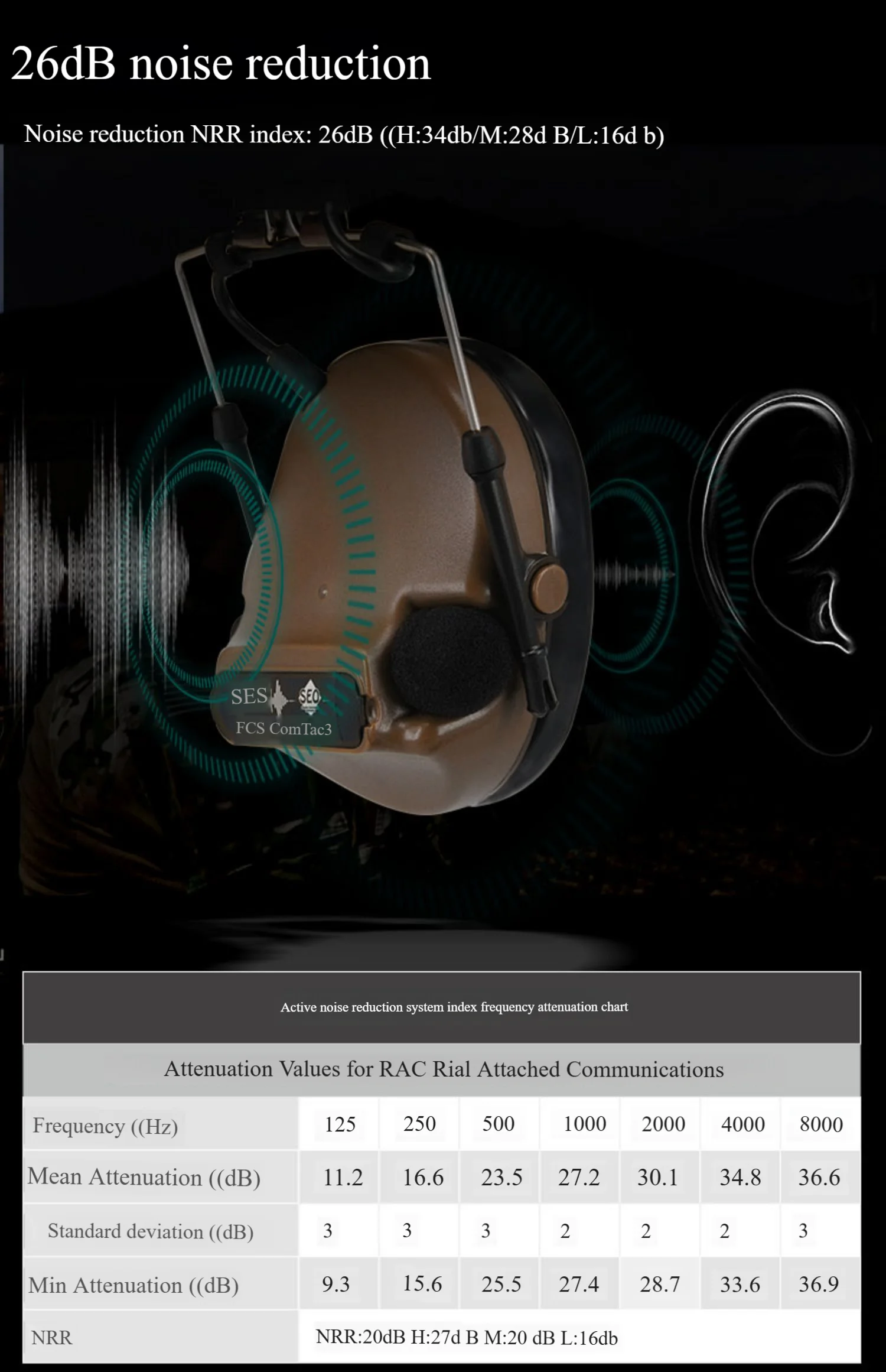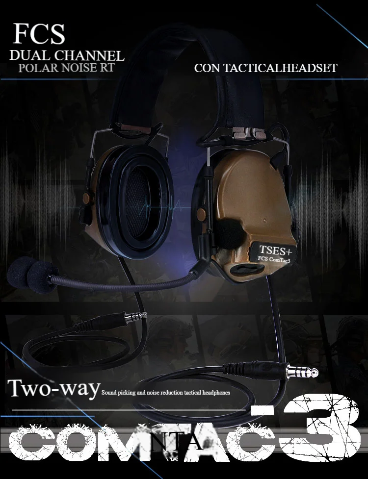 Auriculares tácticos de comunicación con cancelación de ruido y captación de doble canal COMTAC3 C3