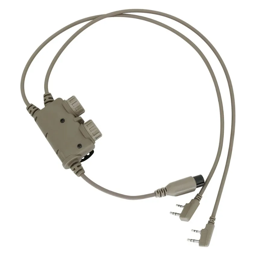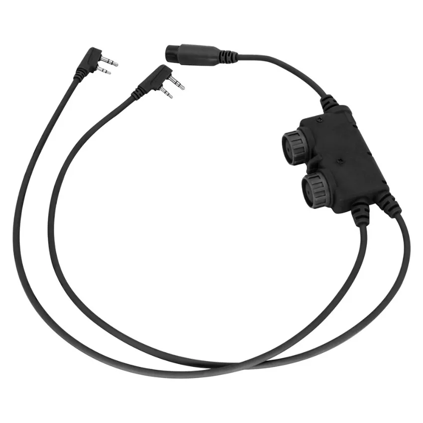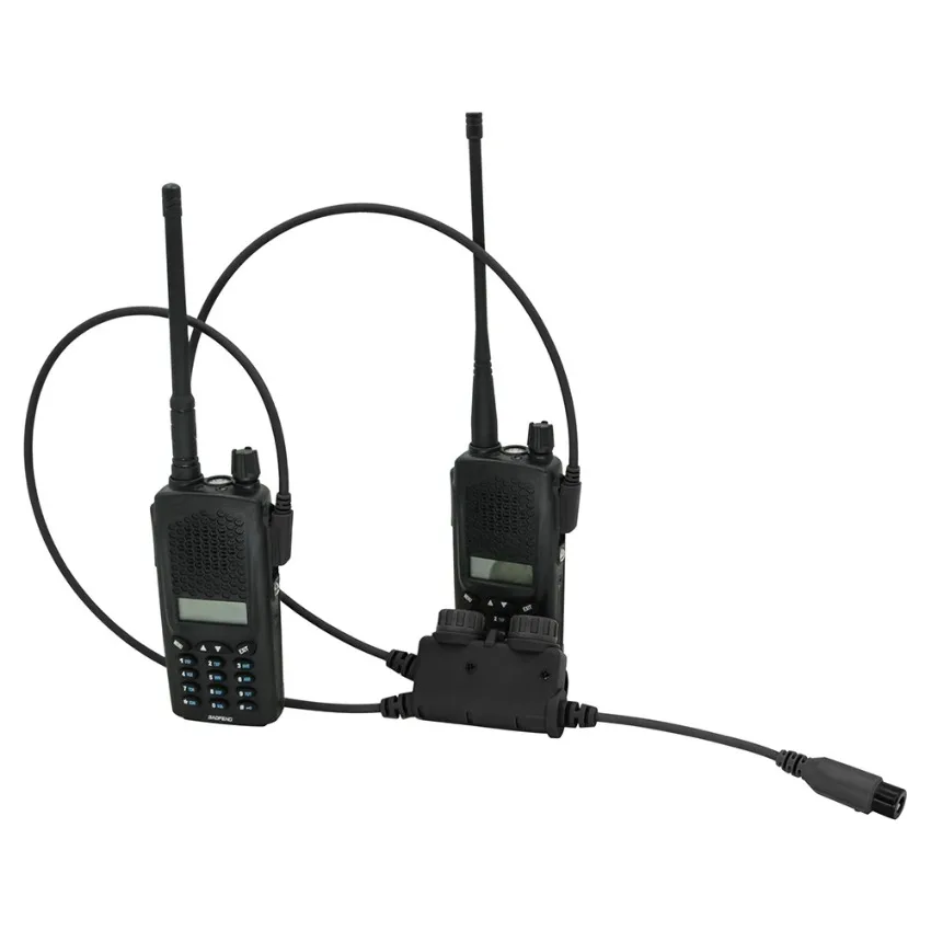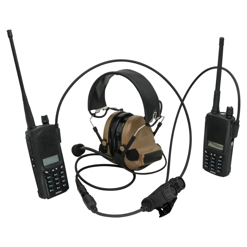 Auriculares tácticos de comunicación única Con este PTT, puede comunicarse con dos walkie-talkies al mismo tiempo.