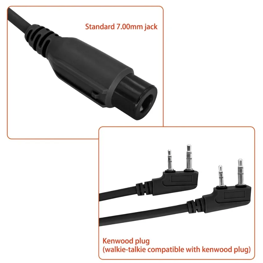 PTT tiene dos enchufes Ken que son compatibles con walkie-talkies o walkie-talkies Baofeng UV5R con conectores Kenwood