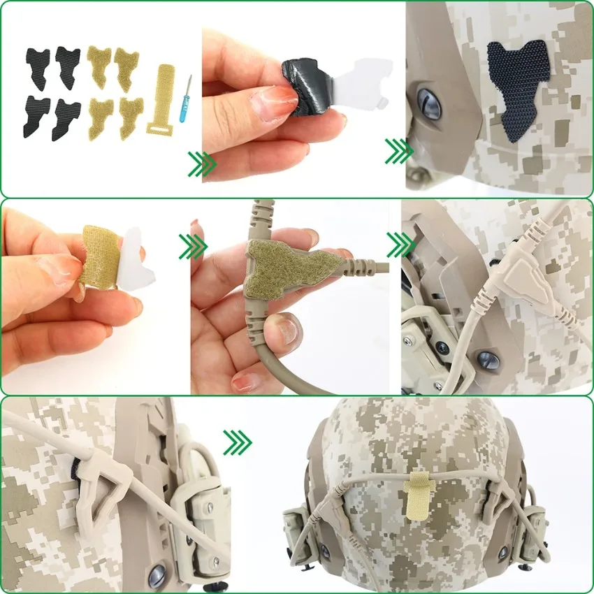 El adaptador de riel guía admite cascos de la serie FAST, cascos ACH, cascos MICH y otros cascos con rieles guía ARC en el lateral.