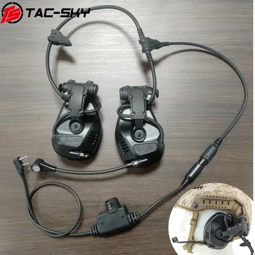 Auriculares tácticos RAC: auriculares de comunicación con captación y cancelación de ruido con adaptador de riel ARC (es necesario instalar 2 pilas AAA, no incluidas)