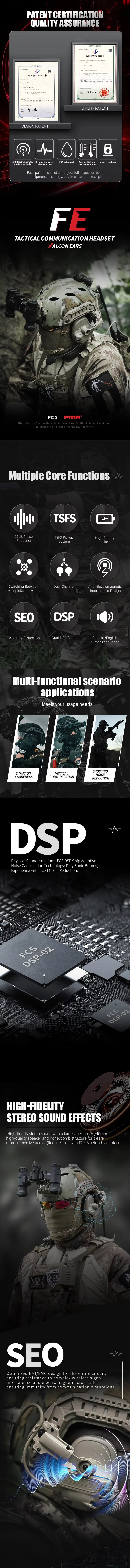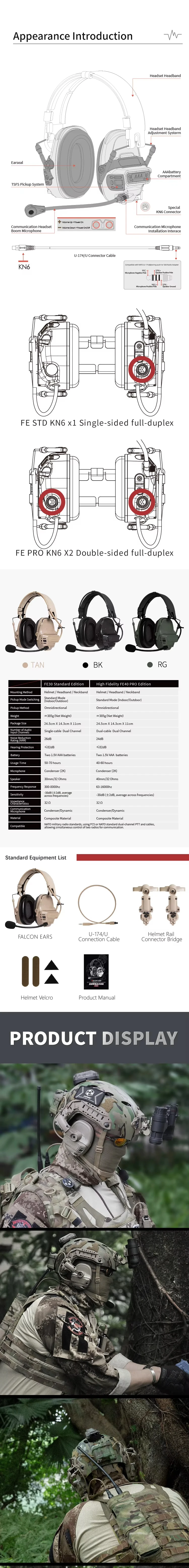Auriculares tácticos de comunicación con reducción de ruido, equipo de paintball de caza, nueva versión digital, serie FE, TB1490