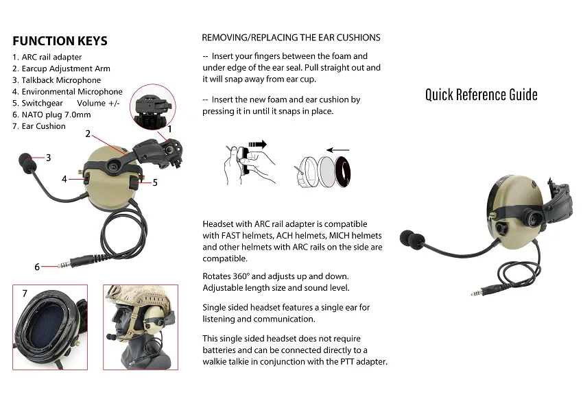 Auriculares tácticos de comunicación de una sola cara, soporte para auriculares con riel de arco, U94 Ptt táctico para walkie-talkie Baofeng