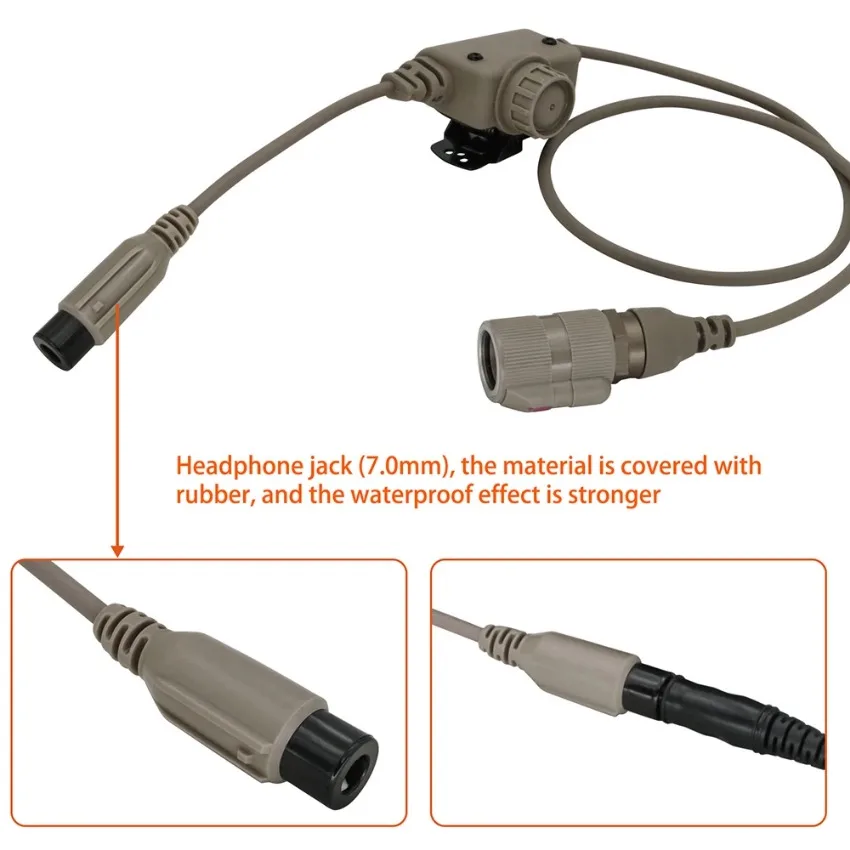RAC PTT de 6 pines compatible con auriculares tácticos con enchufes de 7,00mm y prc152, prc148 y otros dispositivos de interfaz de walkie-talkie de 6 pines.