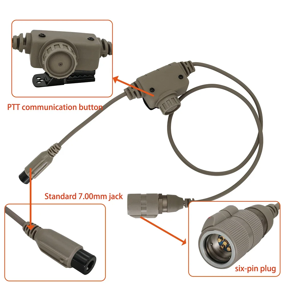 RAC PTT de 6 pines compatible con auriculares tácticos con enchufes de 7,00mm y prc152, prc148 y otros dispositivos de interfaz de walkie-talkie de 6 pines.