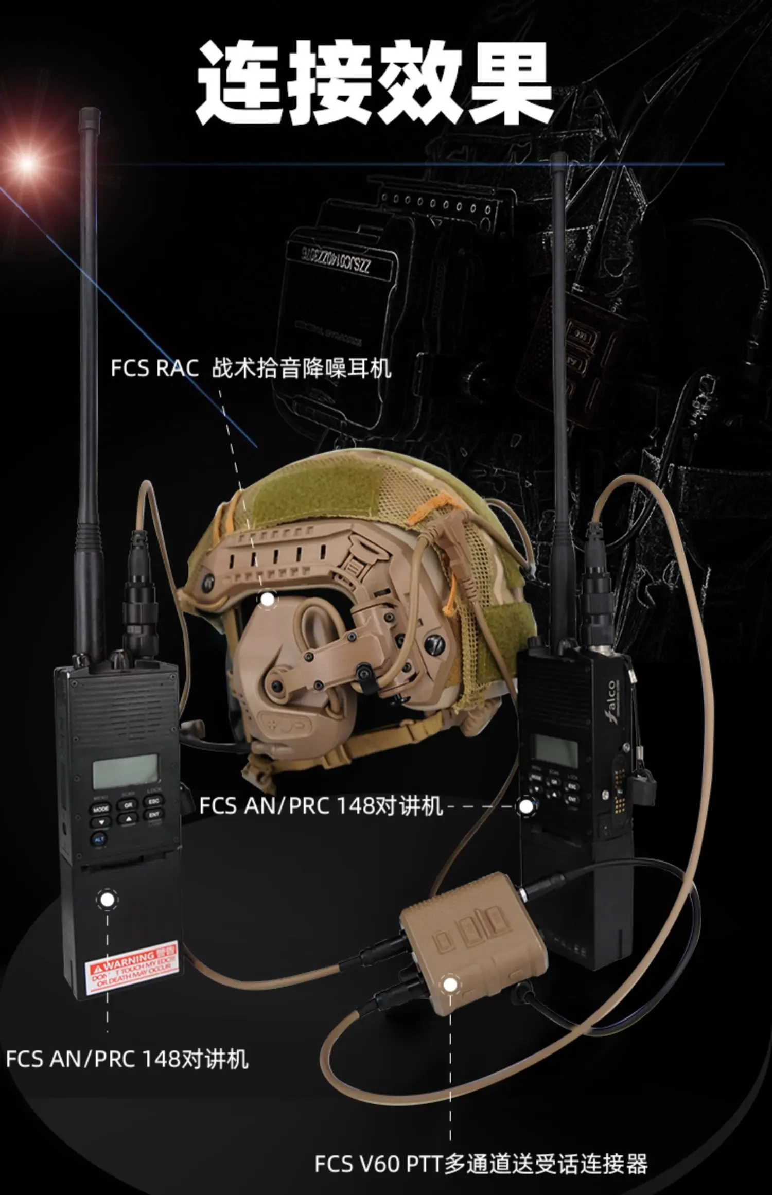 Auriculares tácticos de doble canal multifunción V60, Ptt, Prc148, 152, intercomunicador PTT