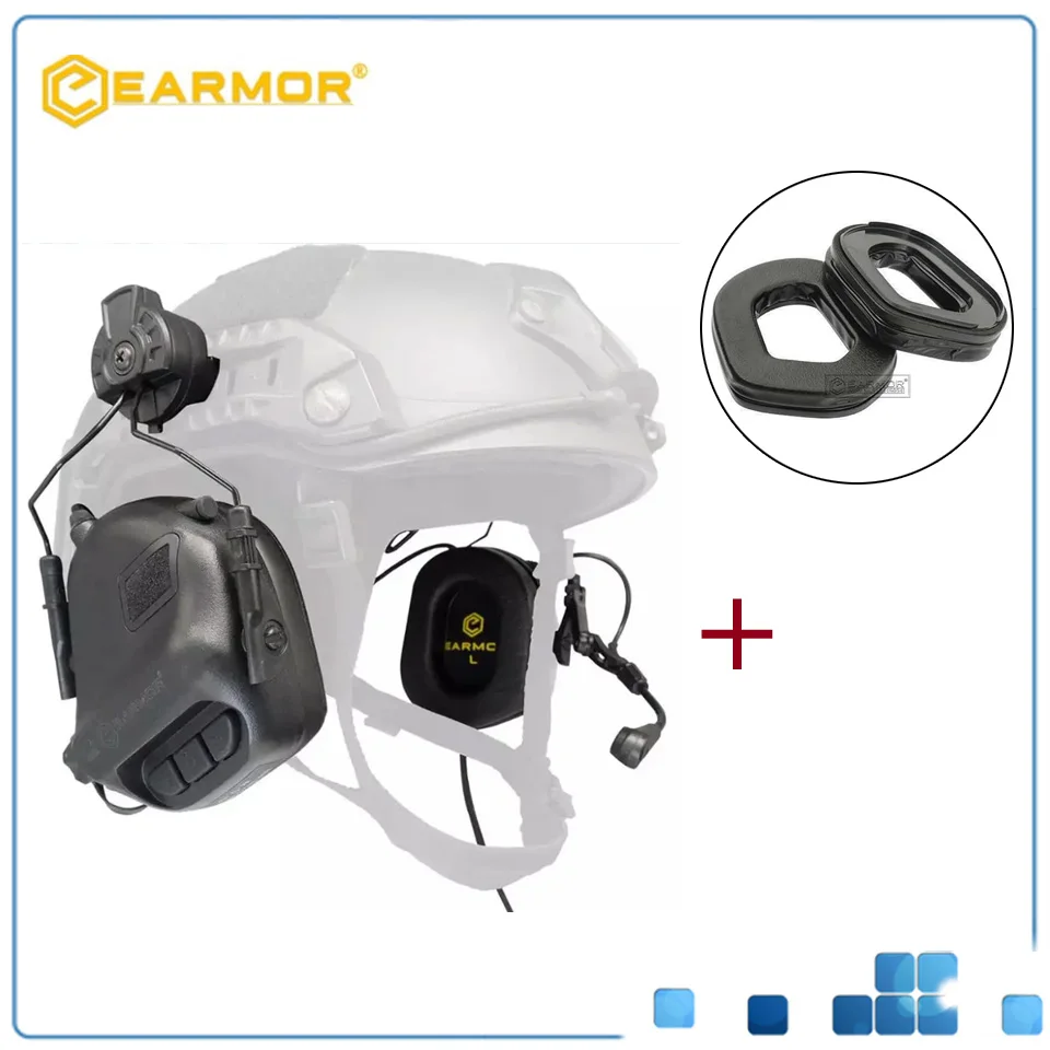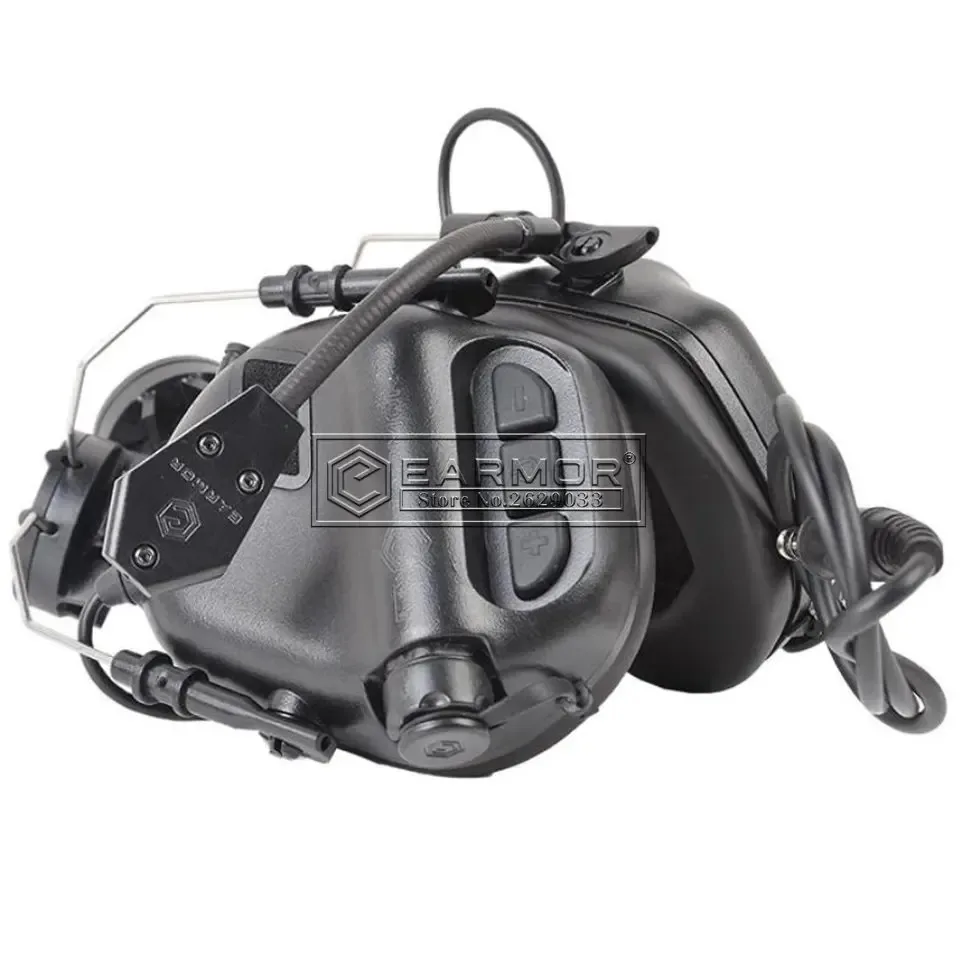 Auriculares tácticos EARMOR M32H y traje negro S03 para auriculares para rieles rápidos para cascos ARC