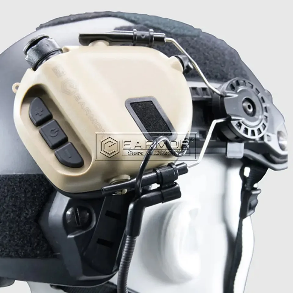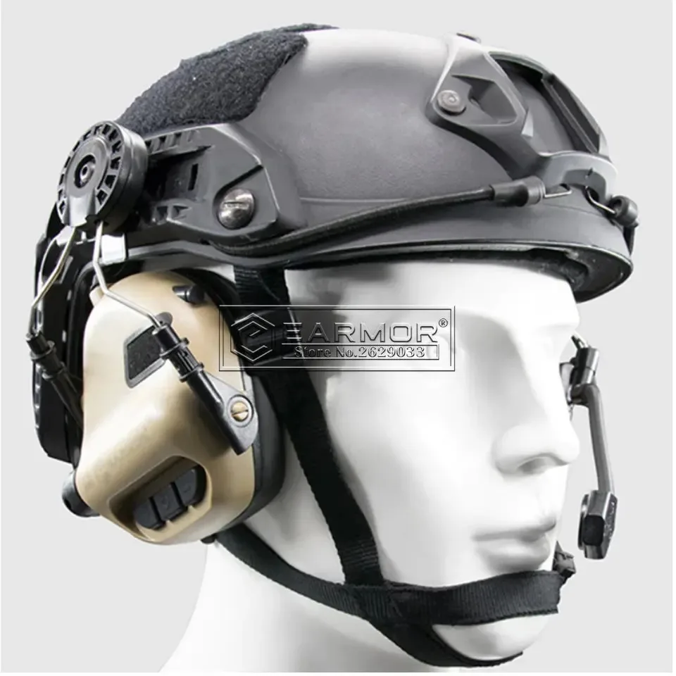 El EARMOR M32H MOD3 es un protector auditivo de comunicación electrónica activado, basado eny viene con un juego de adaptadores de riel para casco para cascos FAST MT,