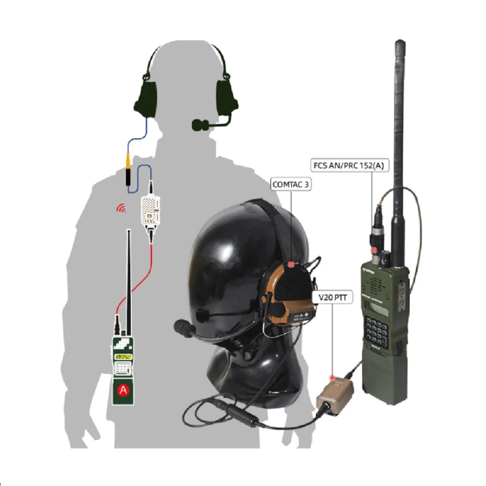 PTT Compatible con modelos de comunicación originales militares de EE. UU., U94, PELTOR, 1/2/152, 2/