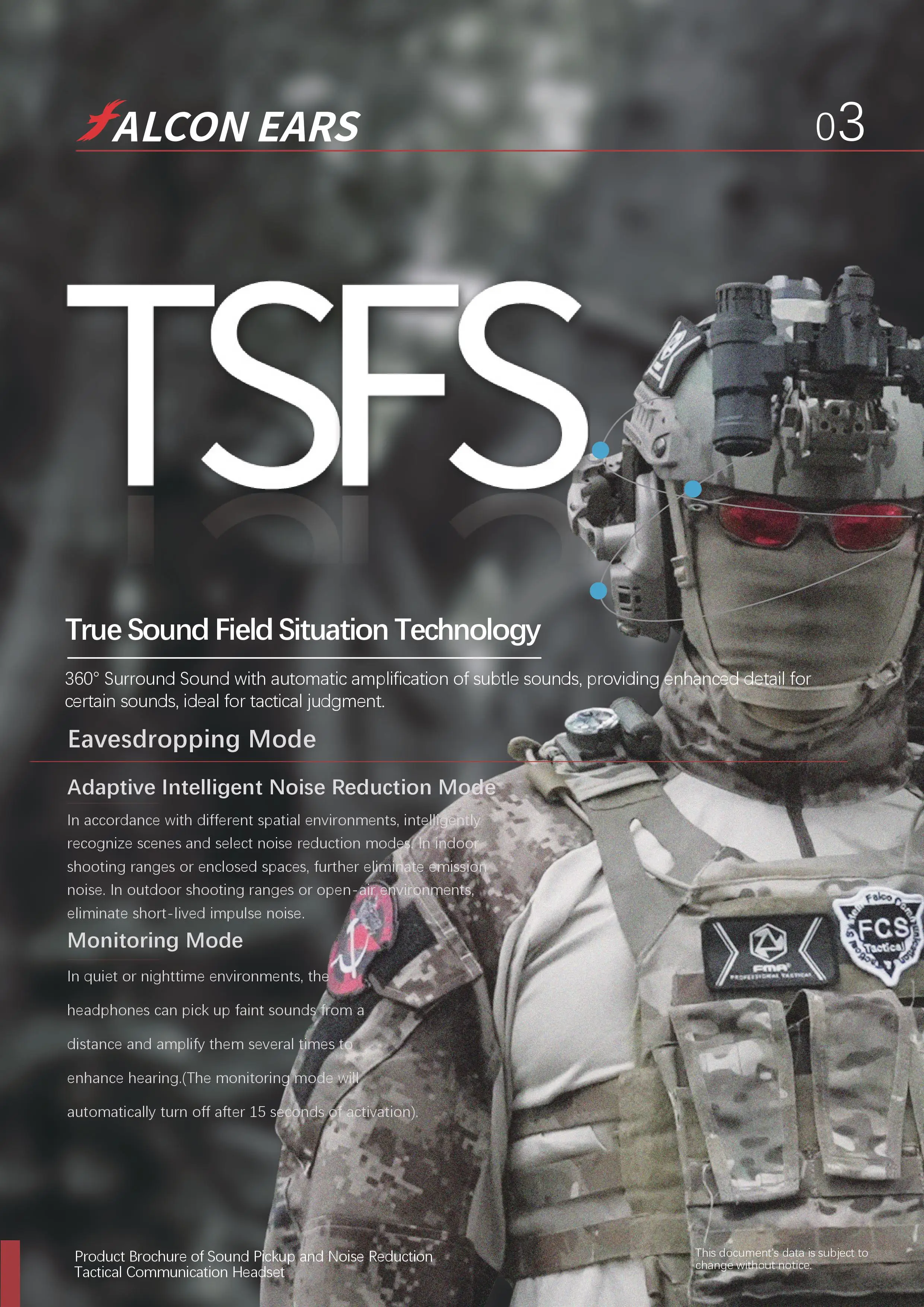 Los auriculares de comunicación táctica FCS Falcon Ears están diseñados para un rendimiento óptimo con las siguientes características destacadas.