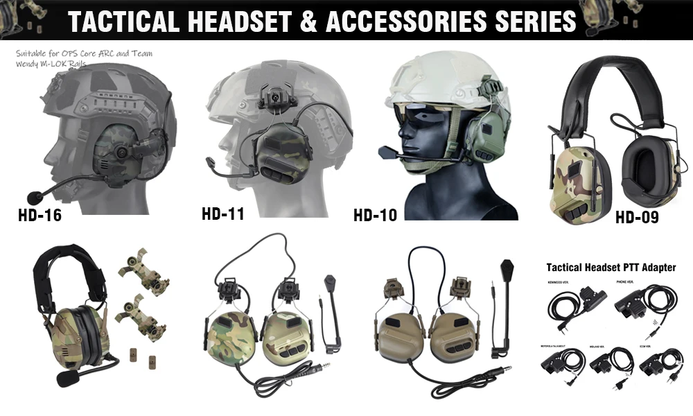 Auriculares tácticos GEN 5, auriculares militares con cancelación de ruido para caza y Tiro para casco FAST OPS Wendy, auriculares de arco de