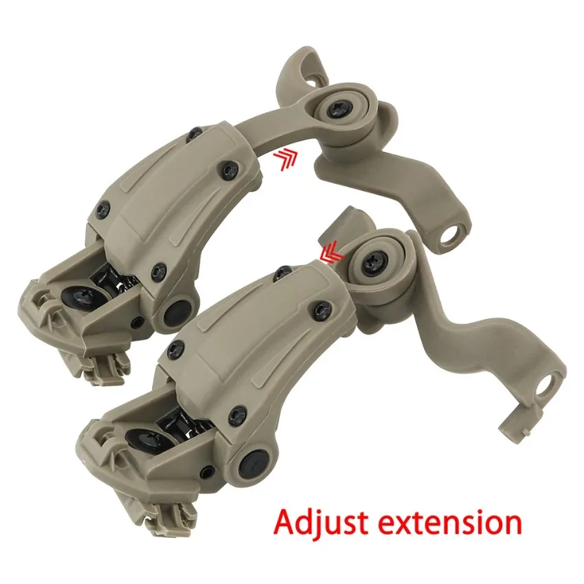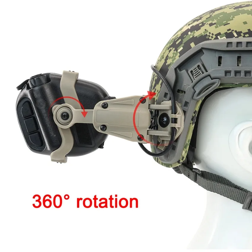 La estructura giratoria de 360 ° y el diseño modular también se pueden equipar con el riel ARC como una nueva forma de llevarlo, lo que mejora la expansión del riel del casco. Montado en el lateral de la pista. El soporte se puede ajustar hacia arriba y hacia abajo, girar 360 ° y la longitud del soporte se puede ajustar. Este soporte montado en el lateral puede dejar la parte superior del riel libre para instalar accesorios, como luces, cámaras, etc. Esto también puede producir una mejor estabilidad del casco y equilibrar el equipo montado en el escudo frontal (como el equipo de visión nocturna).