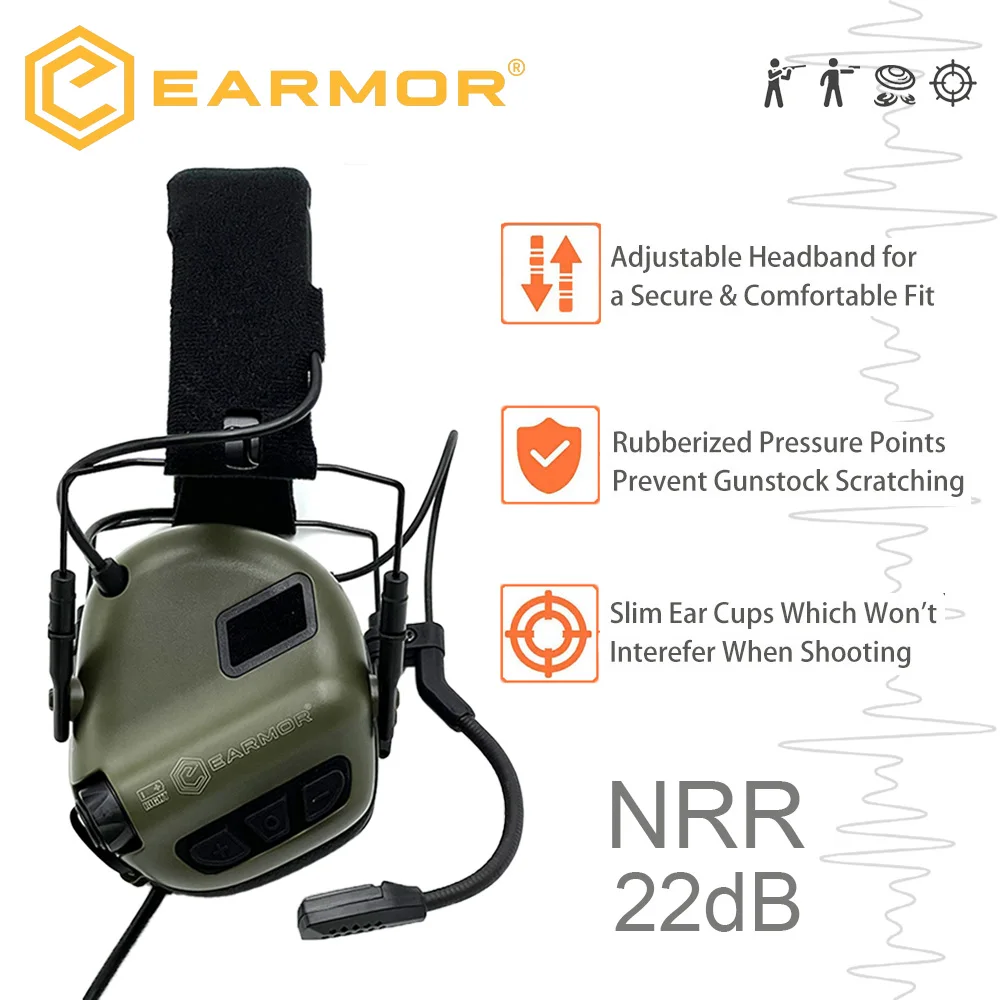 Earmor M32, auriculares tácticos, Protector auditivo electrónico, orejeras de tiro con micrófono para caza, tiro Airsoft