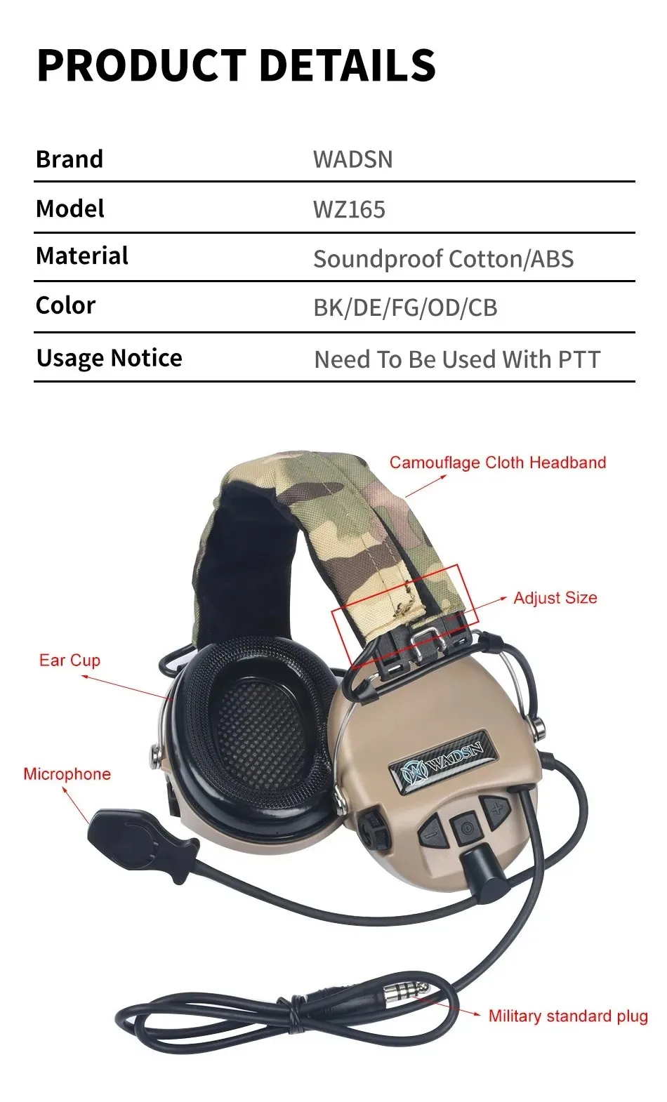 MSA Sordin Earmuff Versión básica Diadema táctica Auriculares Característica: (1) El diseño de perfil bajo permite llevarlo debajo de la cabeza. (2) Tamaño ajustable para un uso cómodo. (3) Auriculares de comunicación, es necesario conectar el PTT (PTT no incluido). (4) Enchufe de versión estándar 7,0. (5) El nuevo auricular de diseño proporciona una voz clara y un soporte cómodo. (6) Micrófono con brazo móvil. (7) Perfecto para actividades de cosplay de juegos de guerra al aire libre. Nota: 1. No necesita batería, la funda de la batería solo Decoración 2. Sin reducción de ruido y sin función de recogida 3. El Botón de los auriculares no funciona.