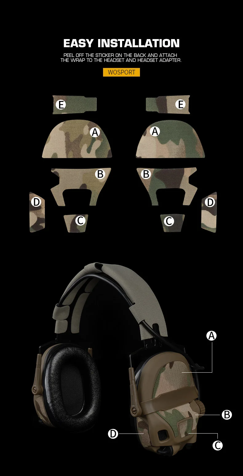 Adhesivo para auriculares tácticos, parche mágico de camuflaje AMP para GEN 6 (HD-17) caza, tiro, cancelación de ruido, orejeras activas para auriculares