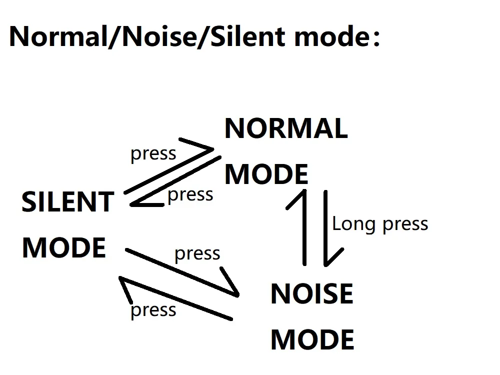 En Modo Normal/ruido, mantenga presionado el botón de función para cambiar entre el modo normal/ruido, en modo silencioso no puede cambiar entre los dos modos.