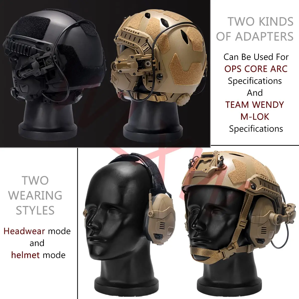 ▶Hay dos formas de usar el auricular (modo montado en la cabeza y modo casco), que se puede adaptar a varias ocasiones; Equipado con dos adaptadores, se puede utilizar tanto para los rieles OPS CoreARC como para los del Team Wendy.