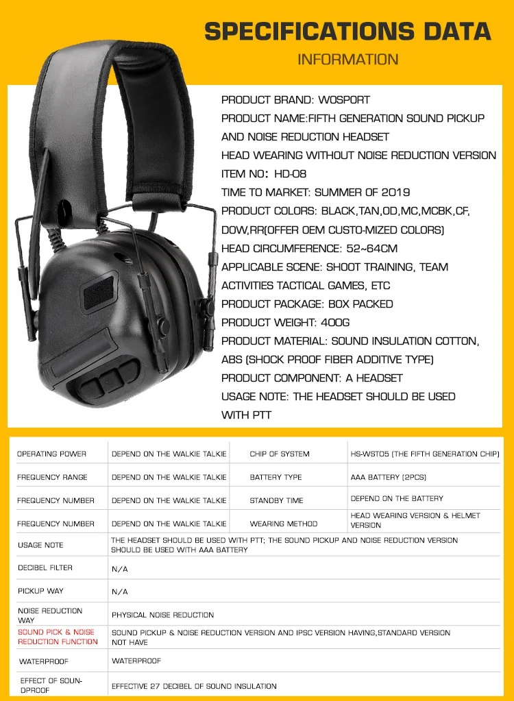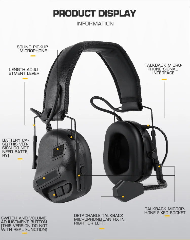 Característica: Auriculares tácticos utilizados por fuerzas especiales. Micrófono desmontable, puerto de micrófono de 2 lados conveniente para uso derecho e izquierdo. Tamaño ajustable para mayor comodidad.Circunferencia de la cabeza aplicable 52-64 cm