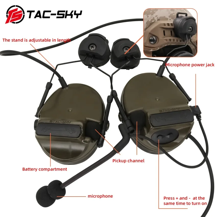 Auriculares tácticos TAC-SKY TSCIII, casco con soporte de riel de arco, versión con cancelación de ruido, auriculares de tiro para deportes Airsoft