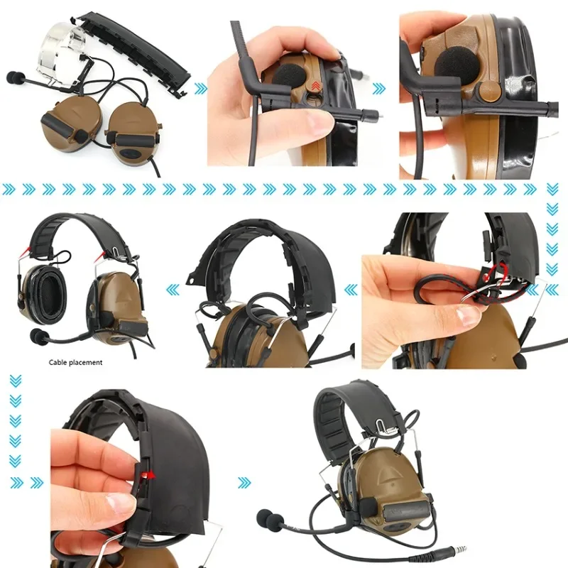 Nueva actualización, los auriculares están equipados con una diadema desmontable.Cuando desee convertir los auriculares con diadema en unos auriculares con soporte para casco, solo necesita quitarlos.