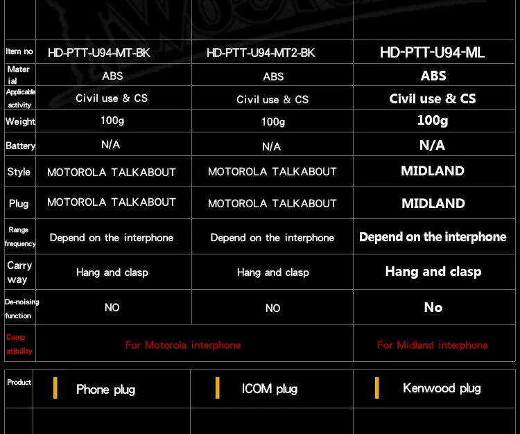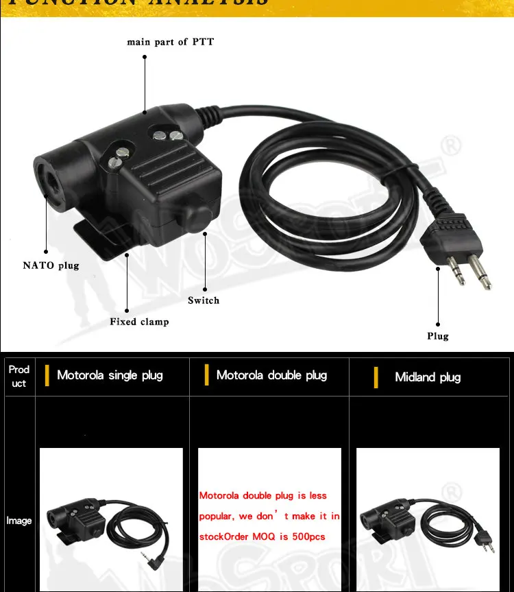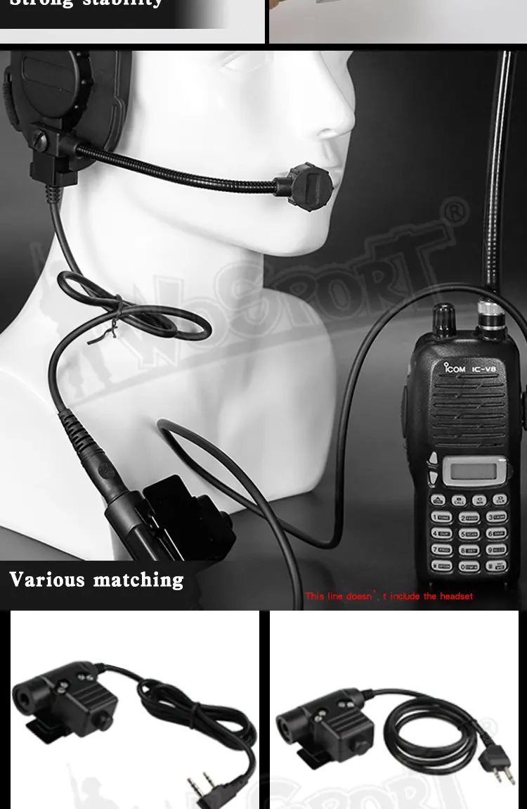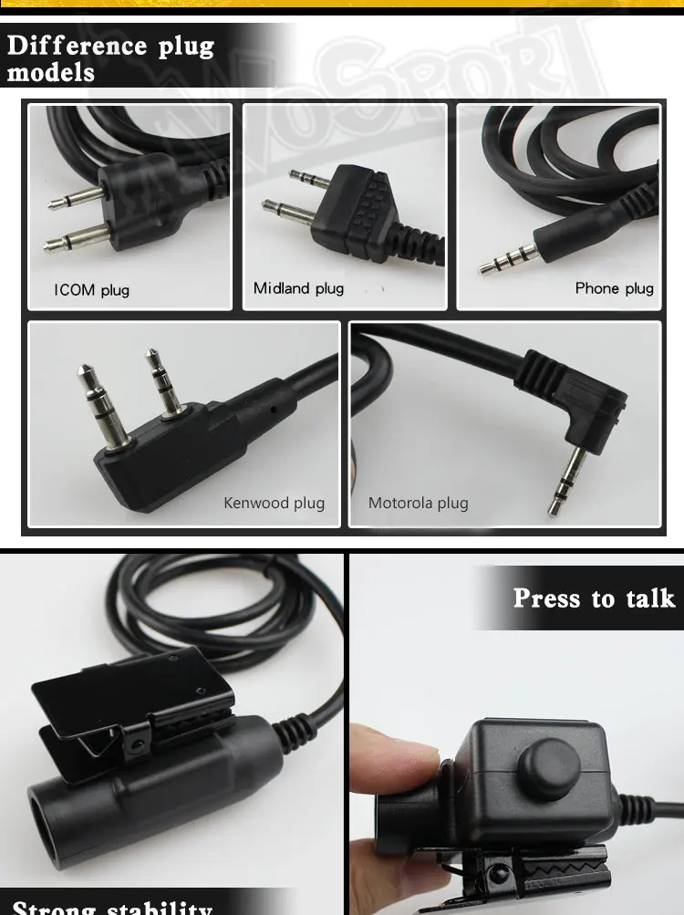 Adaptador PTT de auriculares tácticos U94 para KENWOOD ICOM Midland Motorola Plug Walkie Talkie BaoFeng UV-82 Radio Auriculares PTT PlugCaracterísticas: