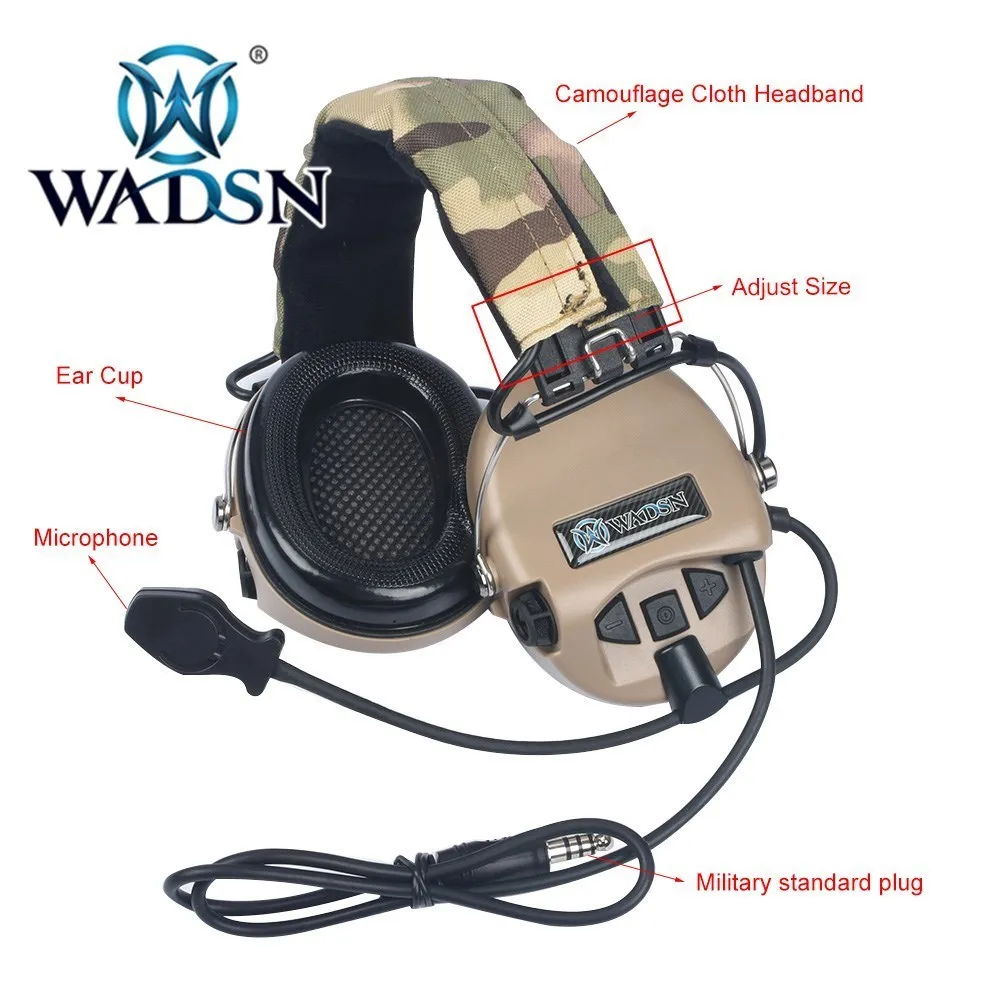 Auriculares tácticos WADSN MSA Sordin auriculares de comunicación de caza al aire libre sin cancelación de ruido WZ165 7,0 enchufe de la OTAN