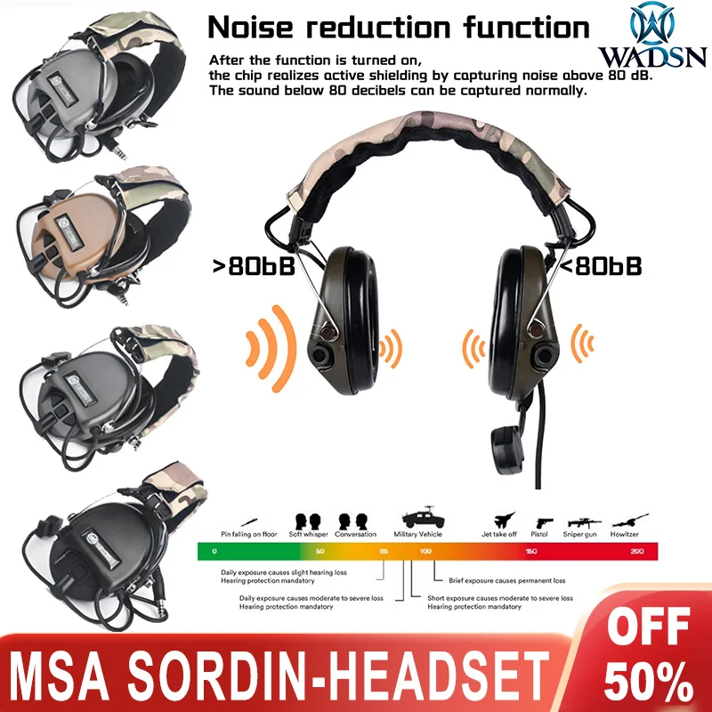 Auriculares tácticos WADSN MSA, auriculares Sordin, pastilla activa, cancelación de ruido, Airsoft, caza al aire libre, auriculares de comunicación