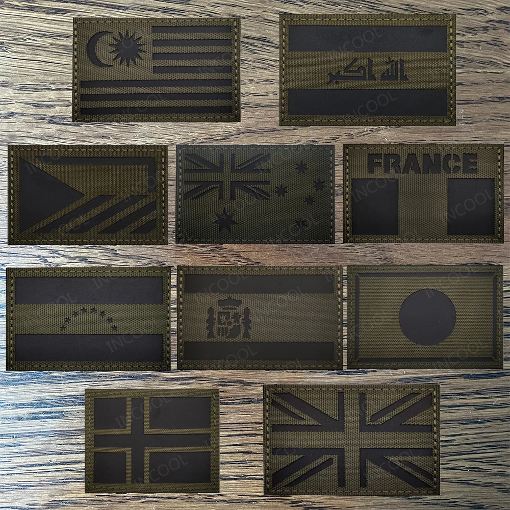 Australia Francia Venezuela España Japón Dinamarca Reino Unido Malasia Irak Suecia Ejército Checo Verde Banderas Reflectantes Tácticas Parches Insignias