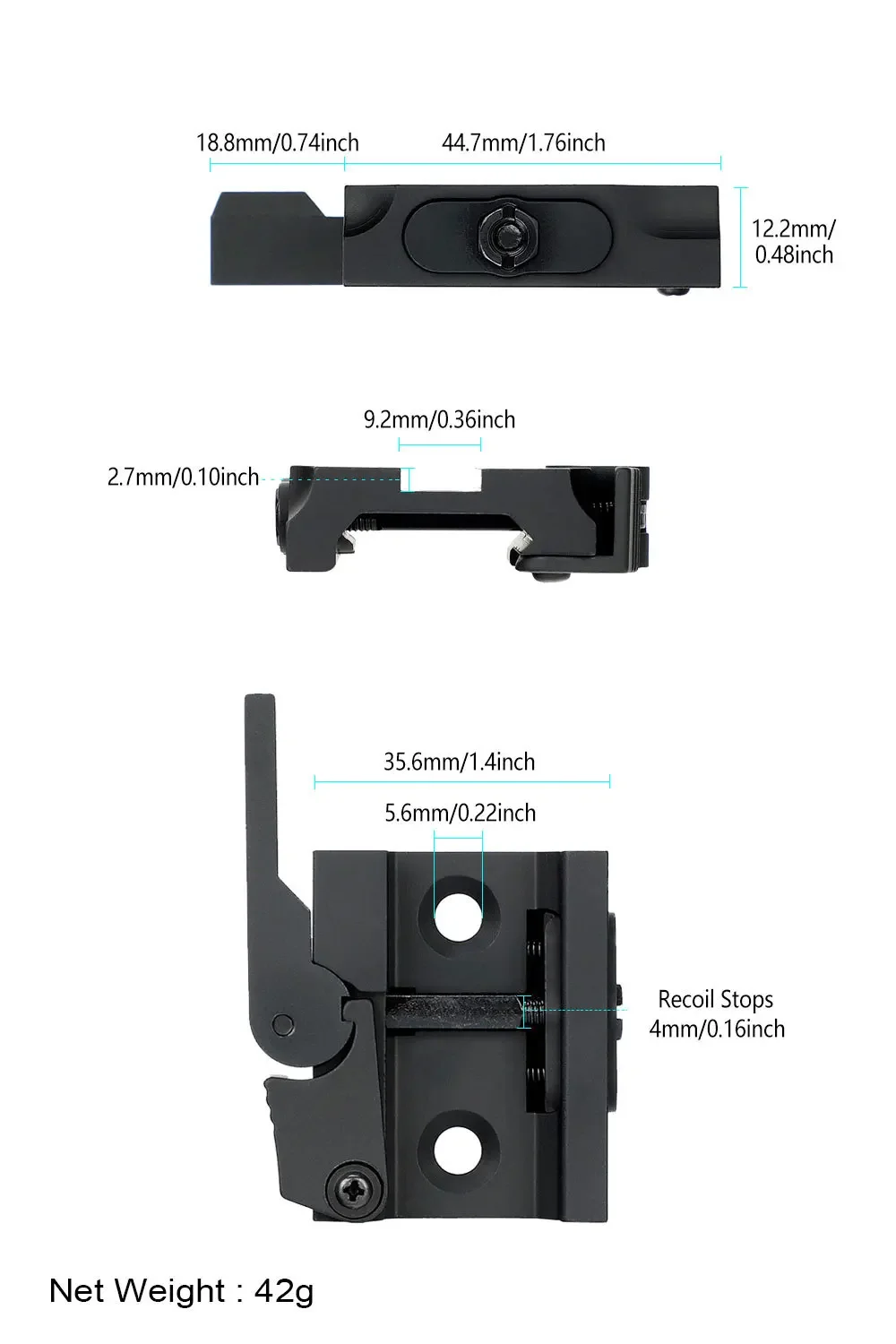 Autobloqueo táctico QD, adaptador de montaje de liberación rápida, alcance de punto rojo compacto, Base Picatinny de 21mm