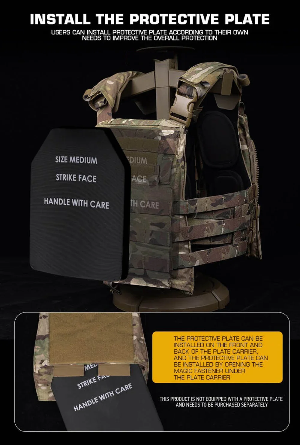AVS MBAV Portador de placa táctica MOLLE Airsoft Chaleco de combate de entrenamiento de caza con sistema de liberación rápida modular cómodo y adaptable