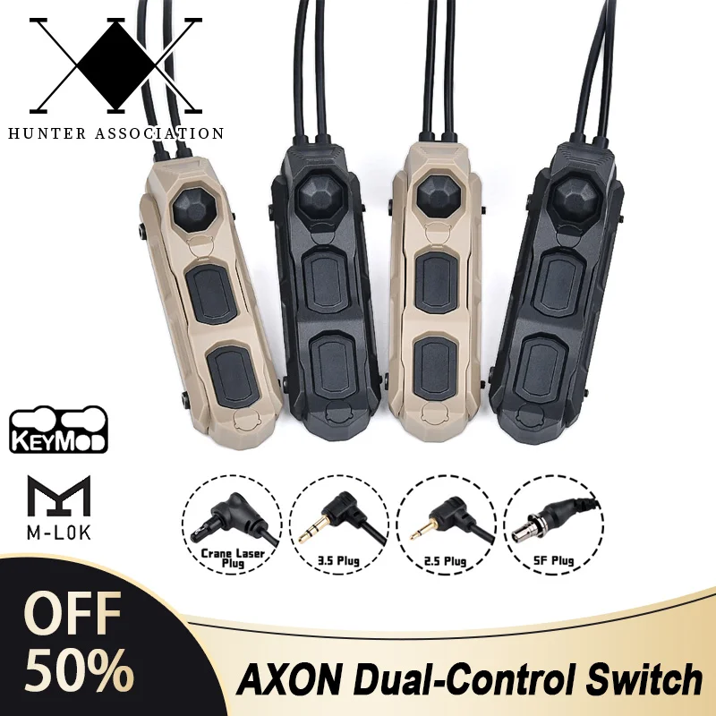 AXON-interruptor de presión de Control de Cable remoto de doble Control para linterna SF 2,5 3,5, enchufe de grúa, MLOK KEYMOD, Láser de caza táctico