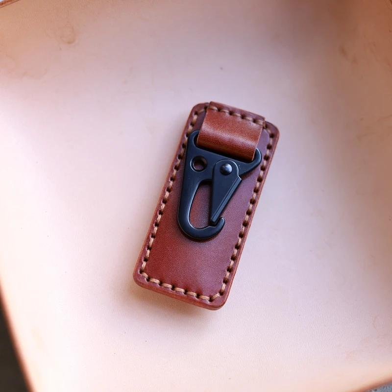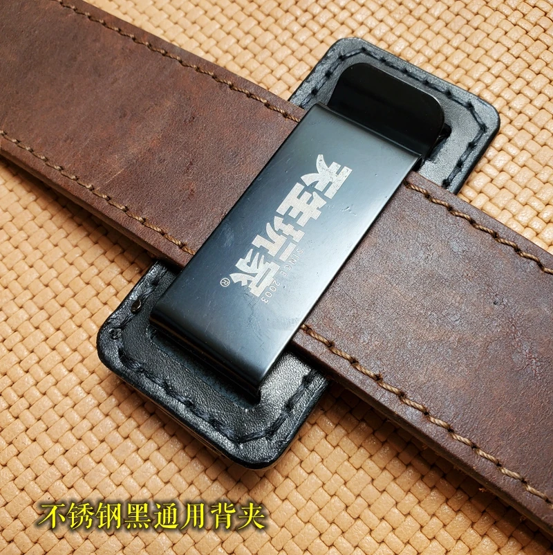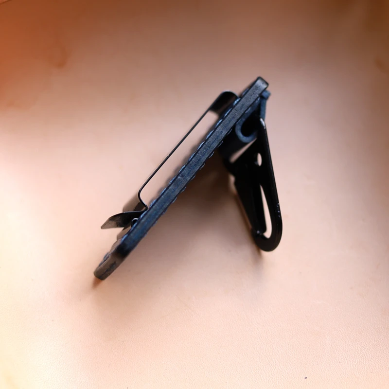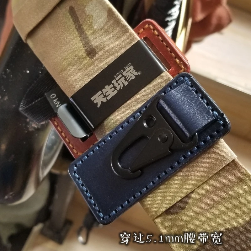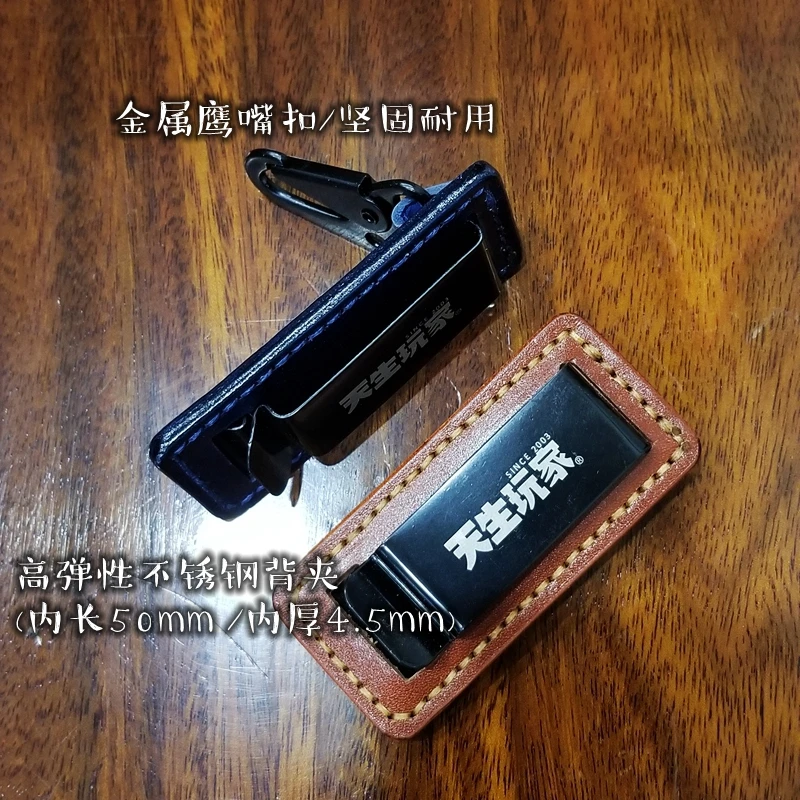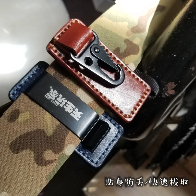 Material; Cuero curtido por plantas (una sola capa de 3mm de espesor) + clip trasero de acero inoxidable + botón de águila de aleaciónCaracterística; Ganado curtido de plantas combinado con hardware de metal,Ajuste de doble cara, costura a mano pura tradicional, requiere mucho tiempoBorde redondo, dos capas de molienda, borde de sellado de aceiteTamaño compacto/material duradero, carga rápida/ajuste sin temblores