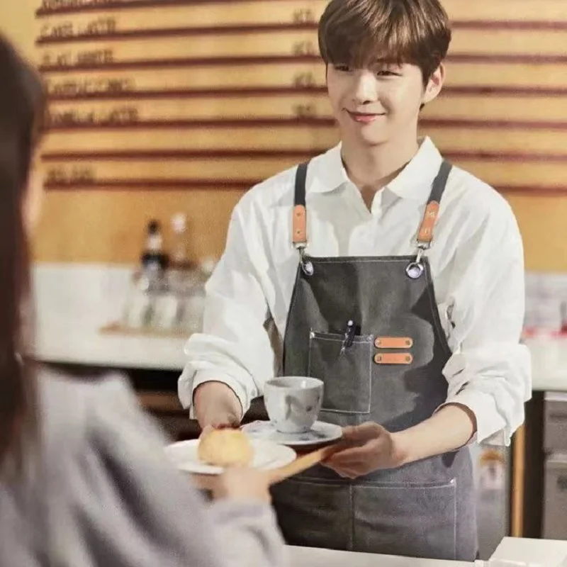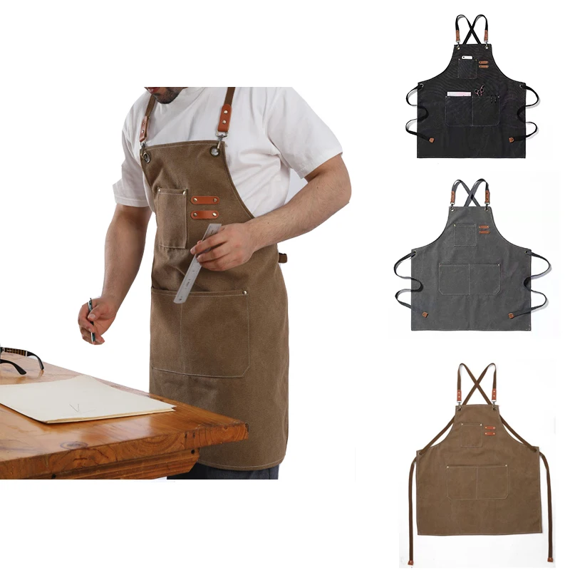 Babero de lona Unisex, delantal de cocina de Chef de cuero, delantal con bolsillos para Barista, hogar, peluquero, café, restaurante, jardín