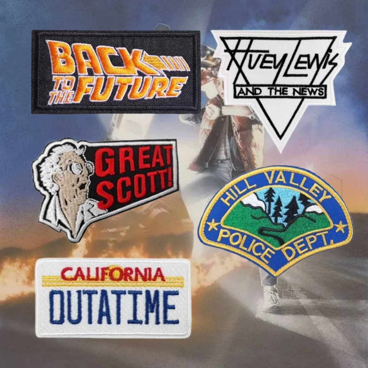 Back To The Future parche hecho a mano bordado de película, parches tácticos para planchar en la ropa, apliques termoadhesivos, insignia de moral