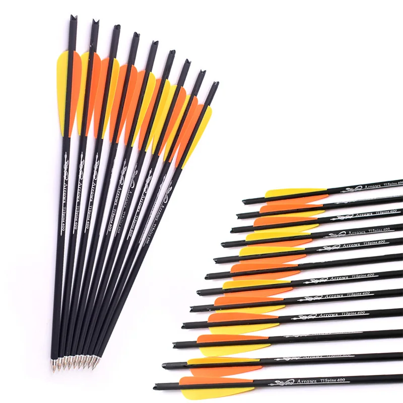 Ballesta de caza para tiro con arco, 16/20 pulgadas, espina de pluma Amarilla y Naranja, Flecha de carbono 400, utilizada para tiro de caza