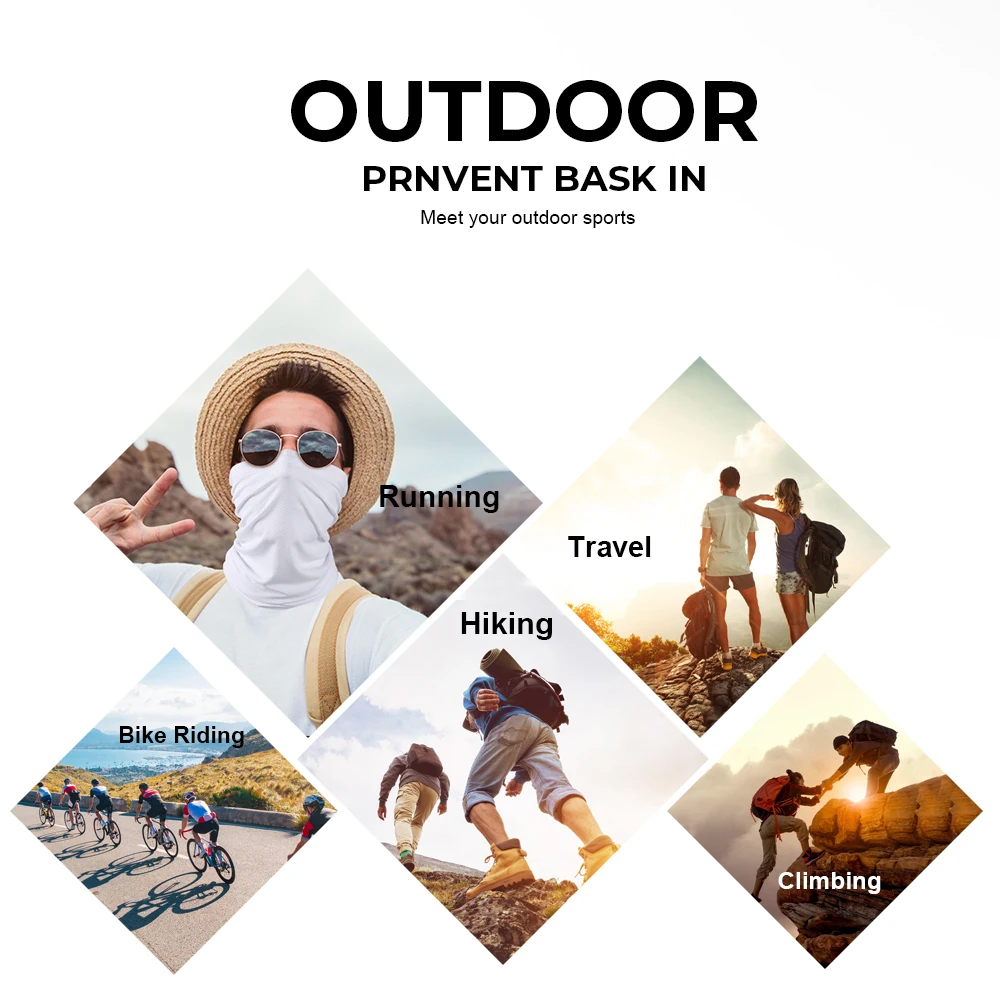 Actividades al aire libre en verano, cubren la cara, la cabeza, el cuello y otras partes bajo exposición al sol, viento fuerte, arena, polvo, humedad y calor, y resuelven los puntos de dolor de quemaduras solares, bronceado, sudoración, engrasar, aspirar y comer suciedad..
